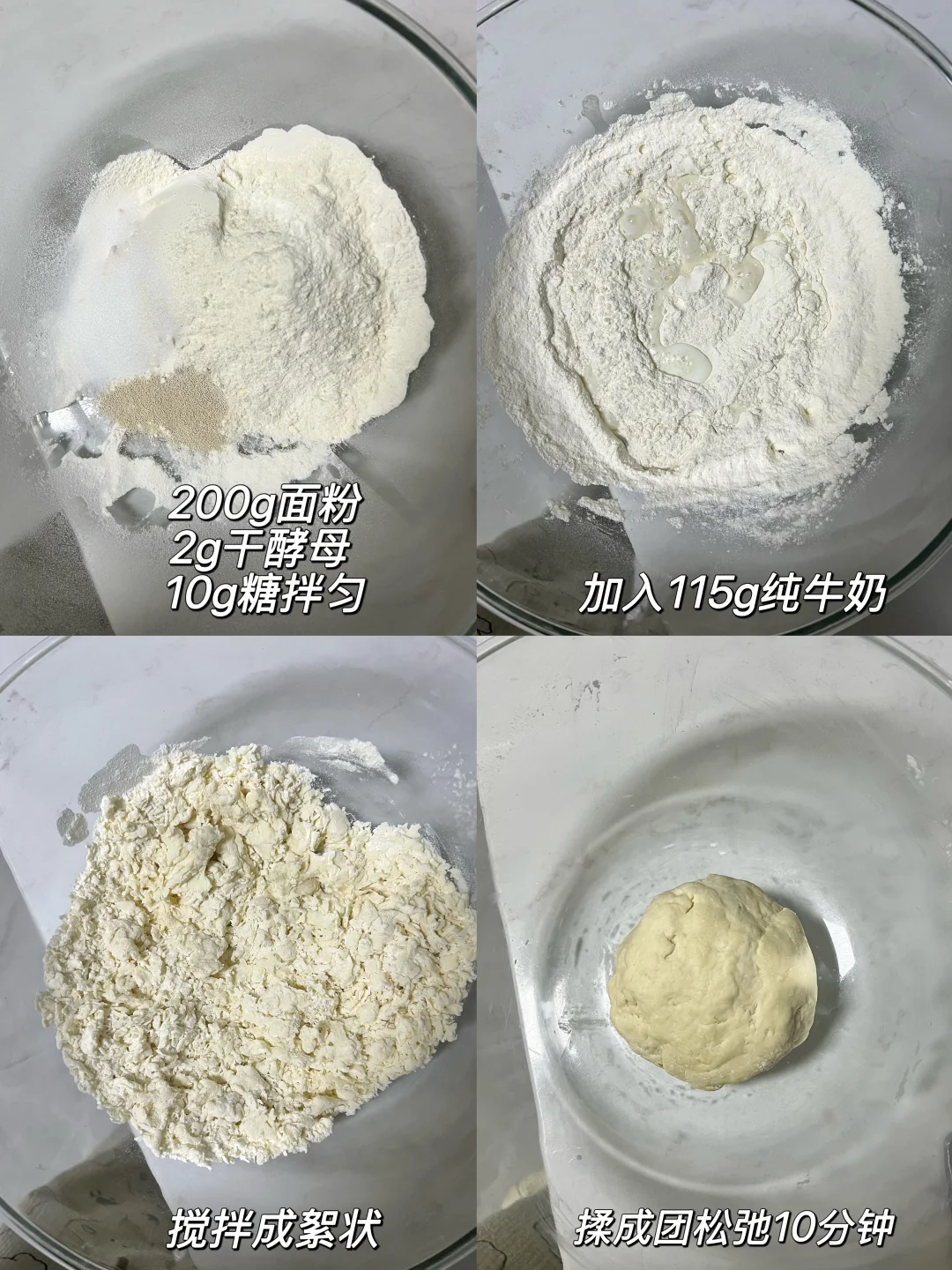 中筋粉200g、牛奶115g、细砂糖10g、干酵母2g、红曲粉适量(也可以用红丝绒液)
