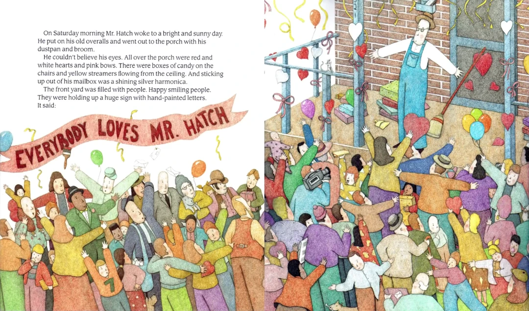 当邮递员告诉哈奇先生糖果是误送到他家的,而且他没有一个秘密的崇拜者时,哈奇先生又退缩了。邮递员告诉邻居发生了什么事。邻居们聚在一起,为哈奇先生举办了一个盛大的惊喜派对,里面有糖果、一把新口琴,还有一个写着“人人都爱哈奇先生”的大牌子