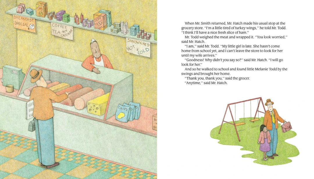 他甚至在他的报摊上和史密斯先生交谈,注意到他看起来病了,并提出在史密斯先生去医生办公室的时候看报摊。哈奇先生继续与其他人交谈,帮助那些需要帮助的人,并与他的邻居分享。