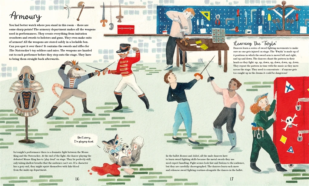 这场皇家歌剧院的后台之旅将带领读者从一个部门到另一个部门——从服装柜到管弦乐队和舞台——去发现上演《胡桃夹子》这样的表演所涉及的内容。