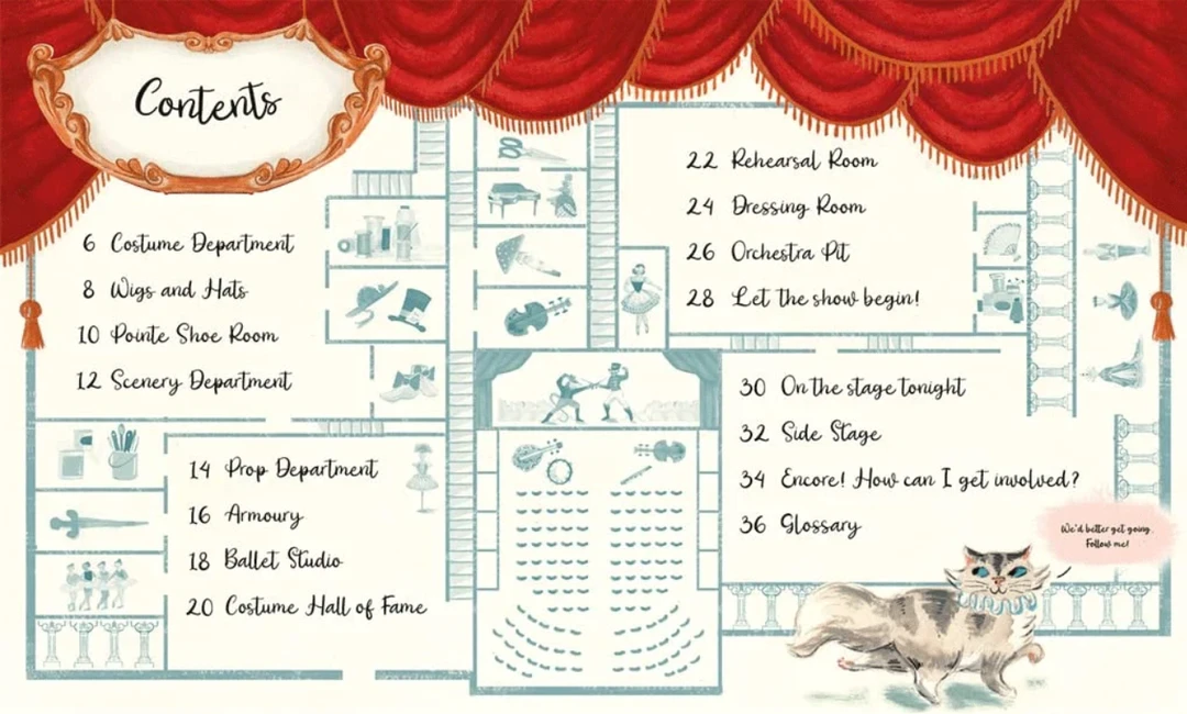 与此同时,歌剧院的常驻猫咪费加罗准备带读者进行幕后之旅,与许多努力使今晚演出取得圆满成功的工作人员见面。