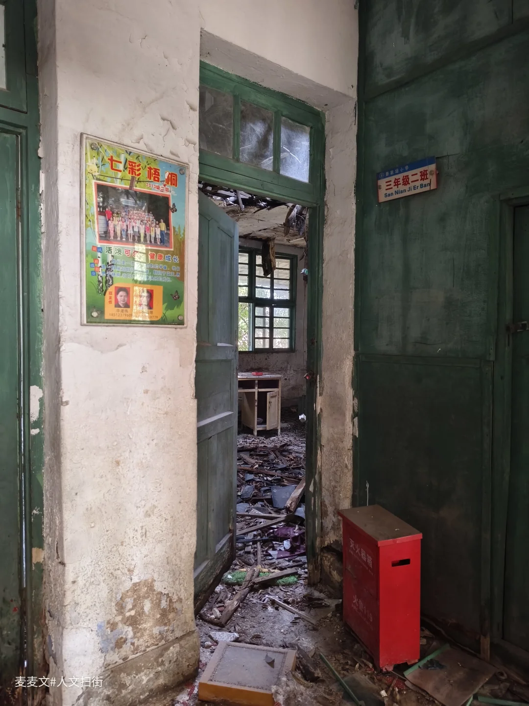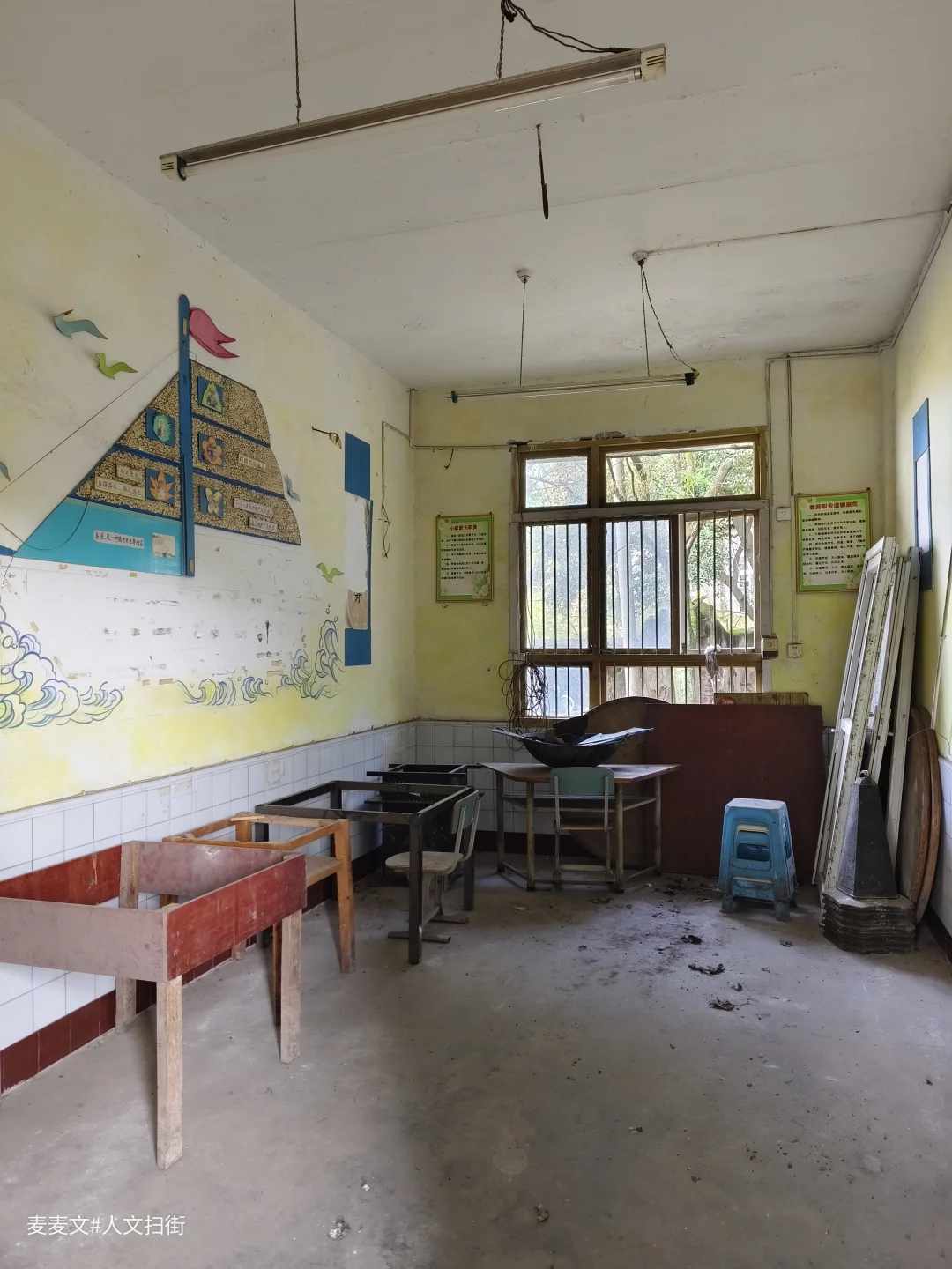 走进重庆市两江新区(北碚区)蔡家场小学旧址,仿佛撞进了被按下暂停键的90年代。爬满青苔的砖房、锈迹斑斑的单杠,还有墙上泛黄的雷锋瓷砖画,都在轻声讲述着这所百年老校的故事。挂满奖牌的小屋、2015年的作息时间表,以及“教育要面向现代化”的瓷砖壁画,还保留着当年的温度。 如今校园里只剩疯长的草木,和空荡的教室,但墙上“快乐学习,快乐成长”的贴纸,仍能让人听见当年的朗朗书声。这里是重庆北碚蔡家老街的集体记忆,也是重庆废弃学校里最温柔的时光标本。