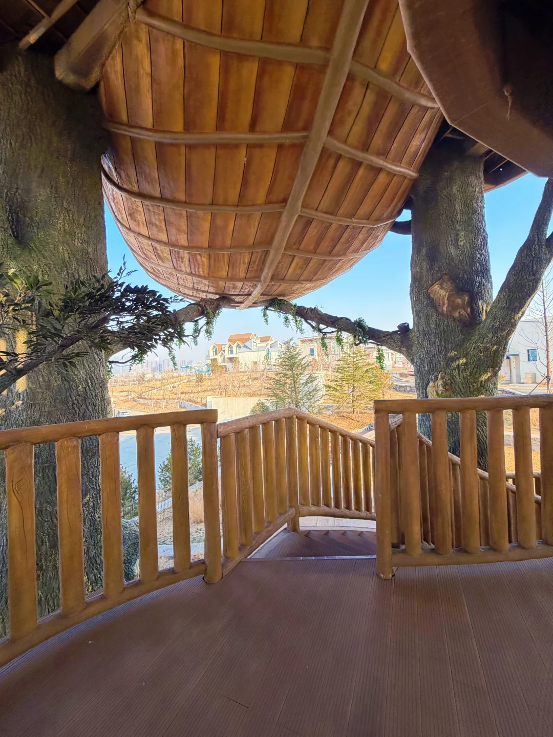 我们在上午十一点就提前到达了,淡季人少,随到随住。可能出于管控成本的原因,主楼的客房均是关闭的,仅开放了前台服务区、幻想岛、餐厅等。也就是说在网上定了基础型房间的客人,到了前台都会被直接升级至loft森泊木屋及以上房型。性价比直接起飞🤩
