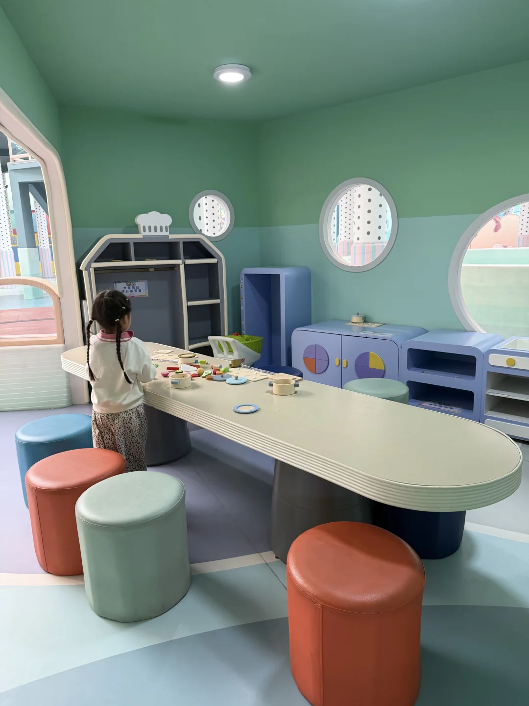 幻想岛的大门一开,娃就像小鸟归林。卡丁车➡️软垫游戏区➡️角色扮演➡️跳格子➡️滑梯城堡➡️攀爬网➡️超大海洋球池,完全可以和meland媲美。除了卡丁车需要我陪,其他都可以撒手。找了一个懒人沙发瘫倒,娃自己嗨了三个小时🥳(图14-17)