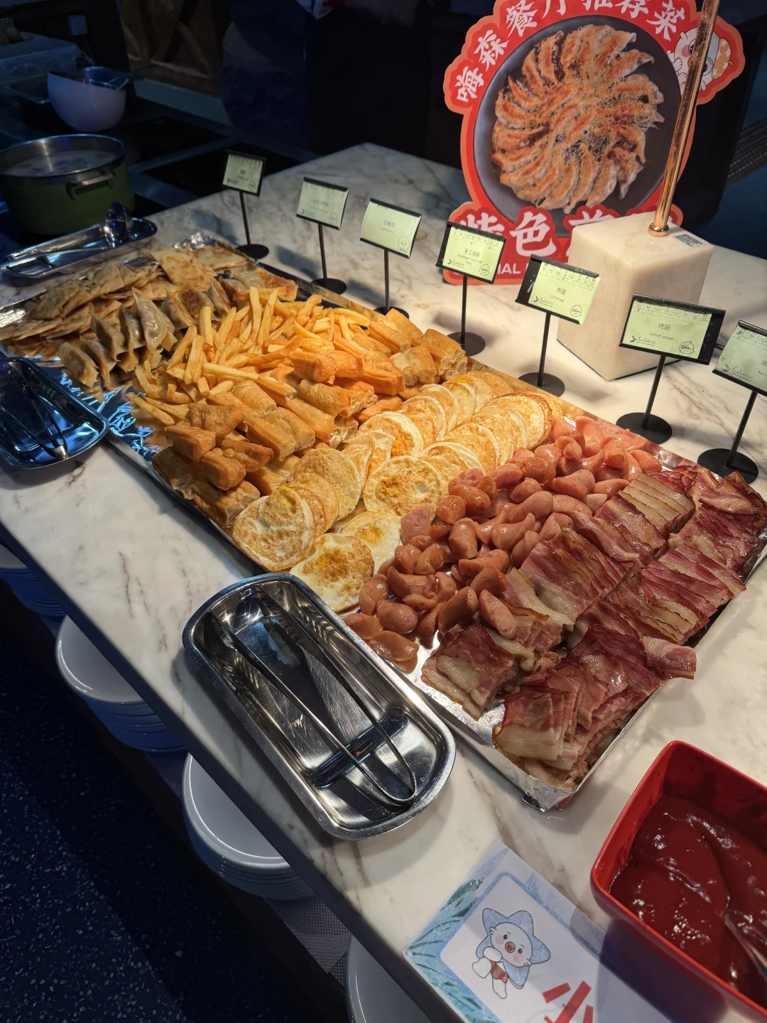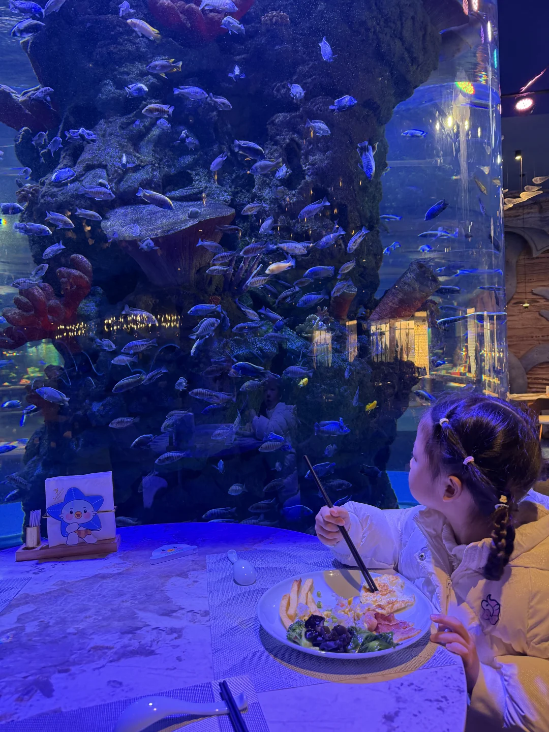 第二天早上在嗨森餐厅享用自助早餐,占据整个视线的超大鱼缸令人惊喜。淡季也不用排队,鱼缸附近的就餐位找好角度可以美美复制亚特兰蒂斯。(图7-8)餐品种类也很丰富,食材是肉眼可见的新鲜👍🏻