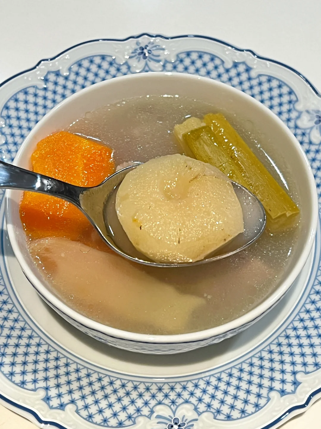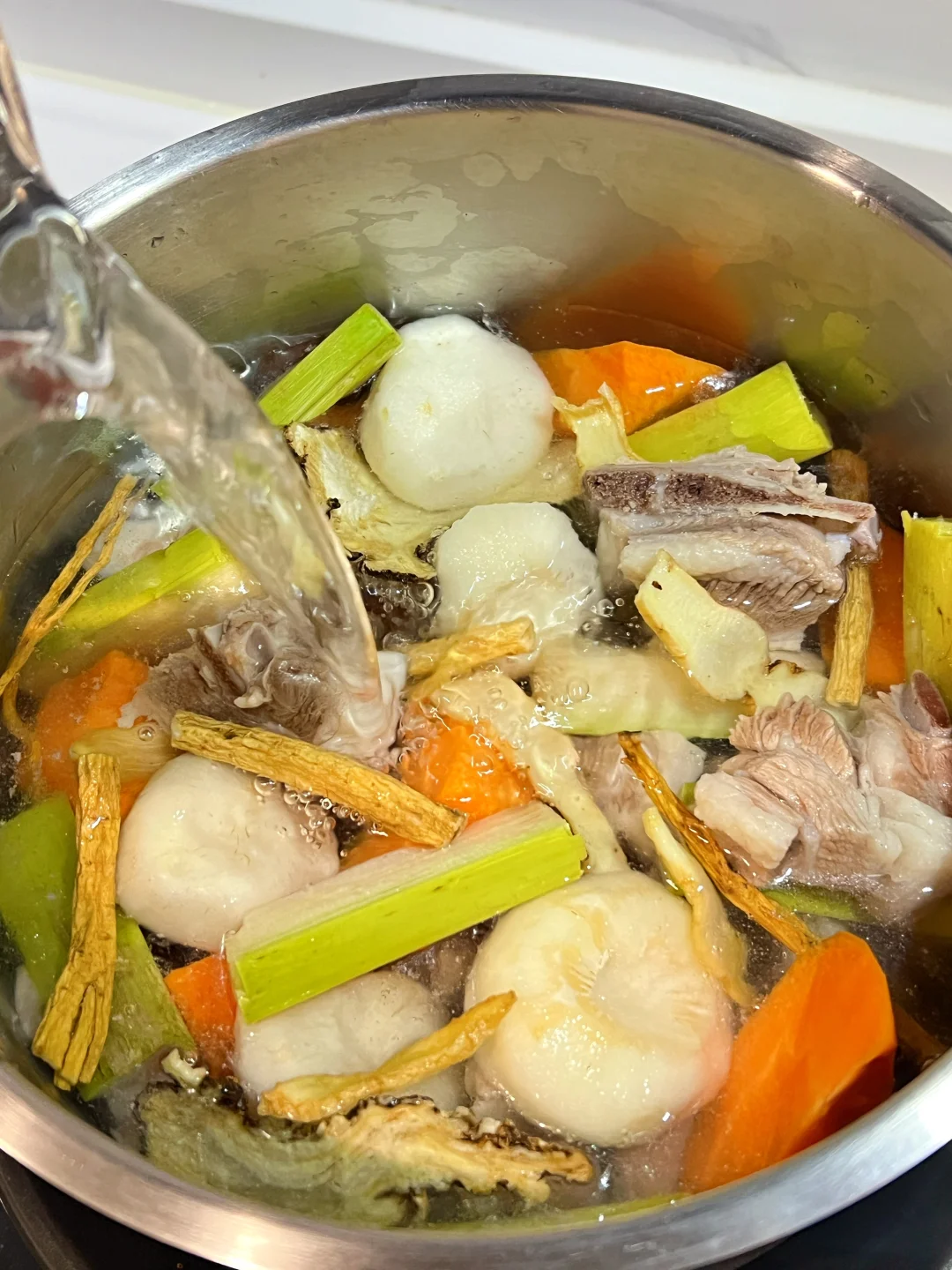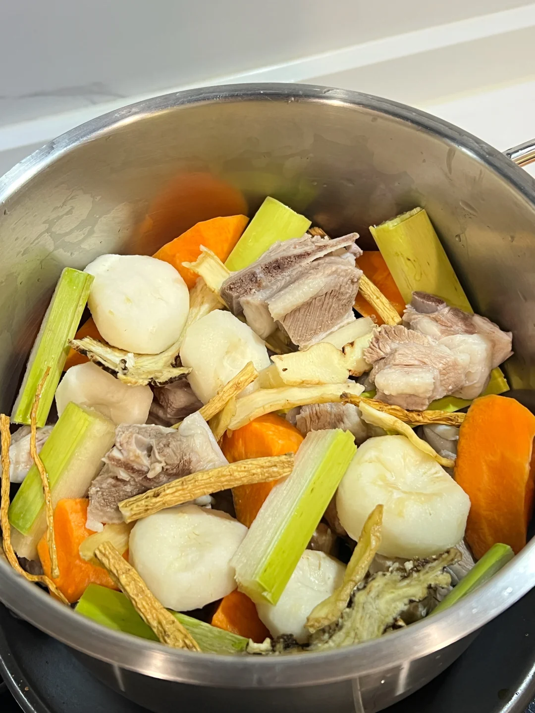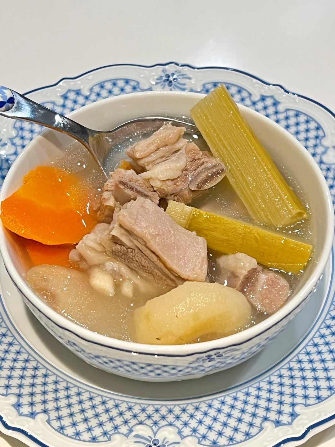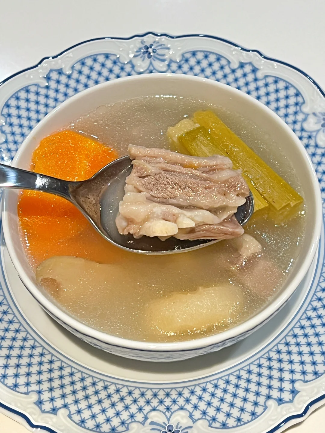 一到冬天就手脚冰凉、脸色蜡黄? 手脚捂不暖,穿再厚也总觉得有寒气往骨子里钻? 都说冬天是藏精蓄锐的季节 喝这碗当归甘蔗羊肉汤给身体充满电⚡️ 🧑‍🍳食材: 1️⃣羊肉600g 2️⃣甘蔗1节 3️⃣胡萝卜1根 4️⃣马蹄300g 6️⃣当归5g 7️⃣党参5g 8️⃣玉竹5g 🥣做法: 1️⃣羊肉冷水下锅,放一调羹的醋焯水洗净备用。 2️⃣胡萝卜去皮切块,马蹄去皮,甘蔗洗净切条备用。 3️⃣将所有食材放进锅中,加1500毫升清水,大火烧开小火煲一个小时,放盐调味即可。 ❗️小贴士: 1️⃣羊肉是阳气很足的食物,不宜放姜。 2️⃣甘蔗马蹄可以降燥。 3️⃣水中放醋给羊肉焯水,能更好去羊膻味。