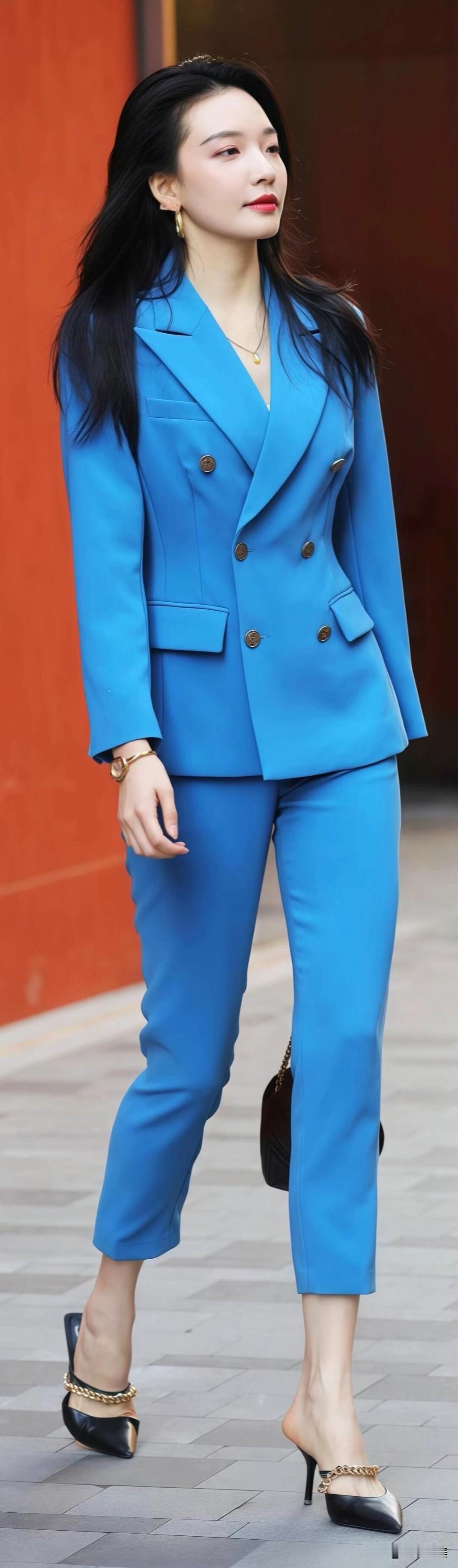 被这件电光蓝西装狠狠拿捏了!极简配色+利落剪裁,自带清冷高级感,是不需要费力就赢很大的穿搭。