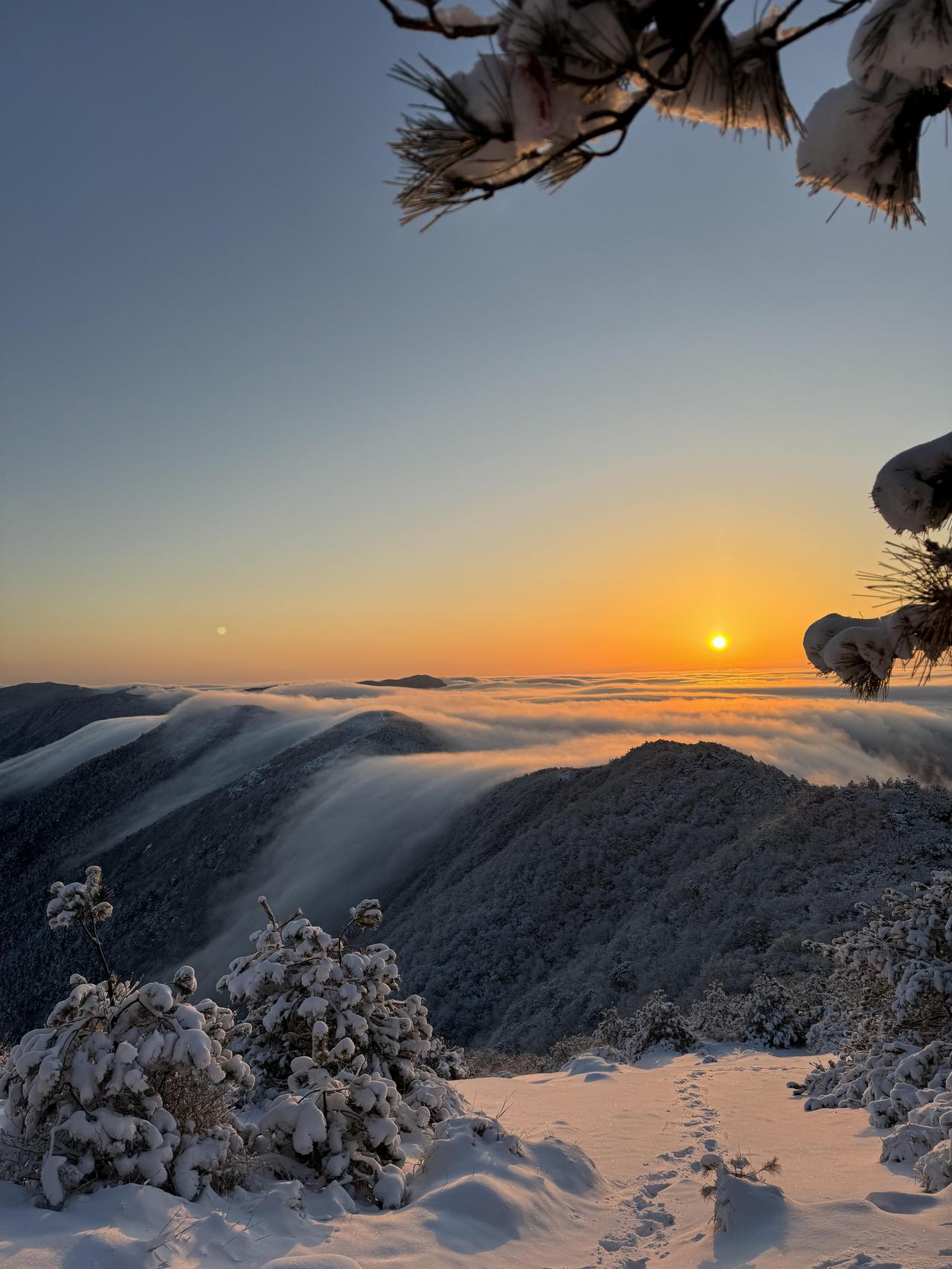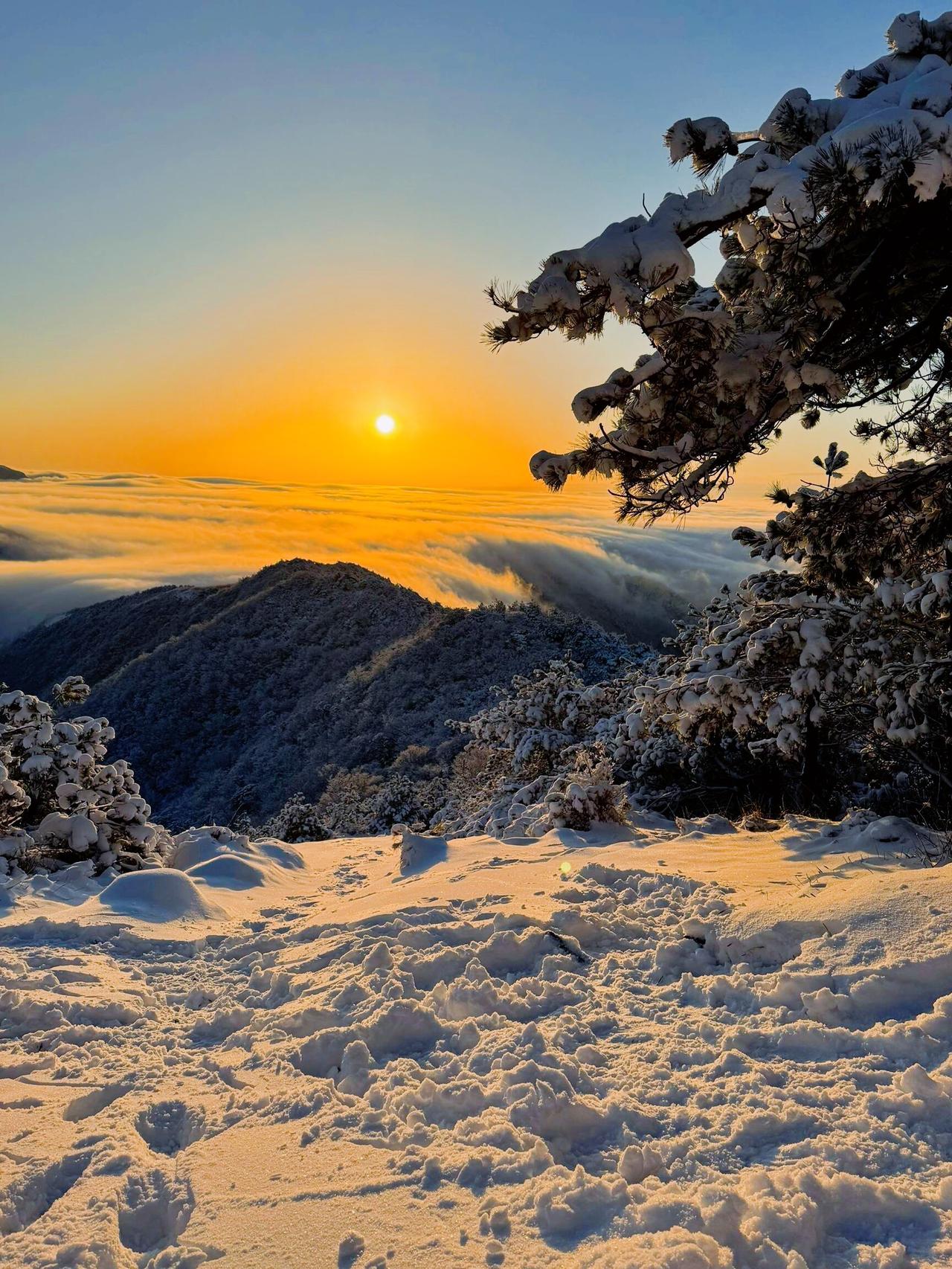 早上5点起来,冒着寒风刺骨凛冽寒风,当我还在睡梦中时,就被朋友叫醒,说山顶的日出已经开始了。 我迷迷糊糊地跟着他们,开始了我们的日出之旅。美不美,各自感悟不一,我早上出门摔了三跤,美轮美奂,值了! 阿坝藏族羌族自治州若尔盖县的雪山!这里有着绝美的风景,壮丽的雪山,还有超震撼的山顶日出! 这雪景美翻了!太阳从山后探出头,暖暖的光洒在雪地上,金灿灿的,树枝挂满了雪,像童话世界一样。