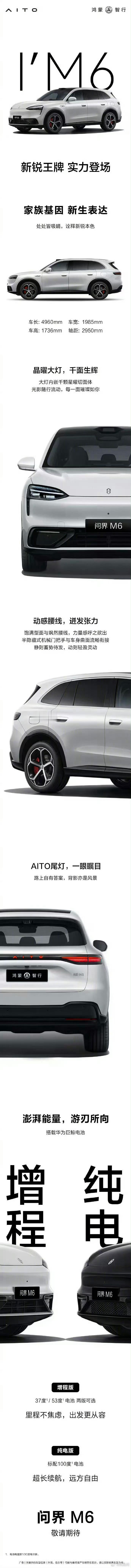终于看到问界M6在工信部公示了,以“纯电+增程”双动力布局亮相,满足大家的各项需
