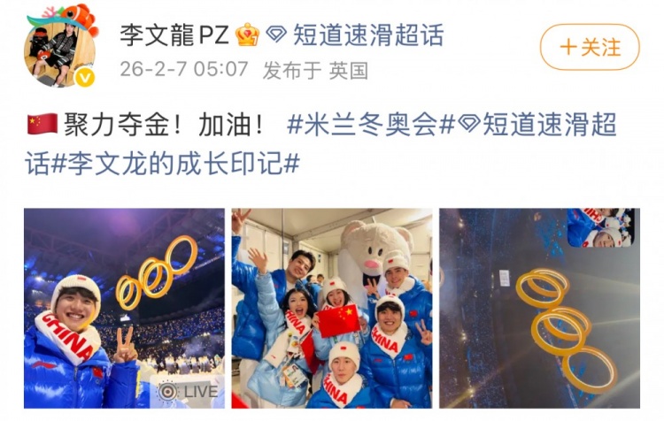 直播吧2月7日讯2026米兰冬奥会正式拉开帷幕,中国男子短道速滑运动员李文龙更新社媒,晒出自己亮相开幕式的照片。