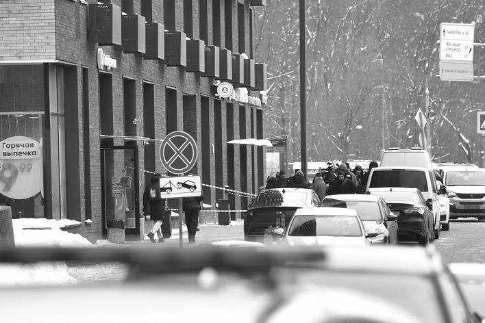 2月6日,在俄罗斯首都莫斯科,枪击现场遭封锁。新华社发