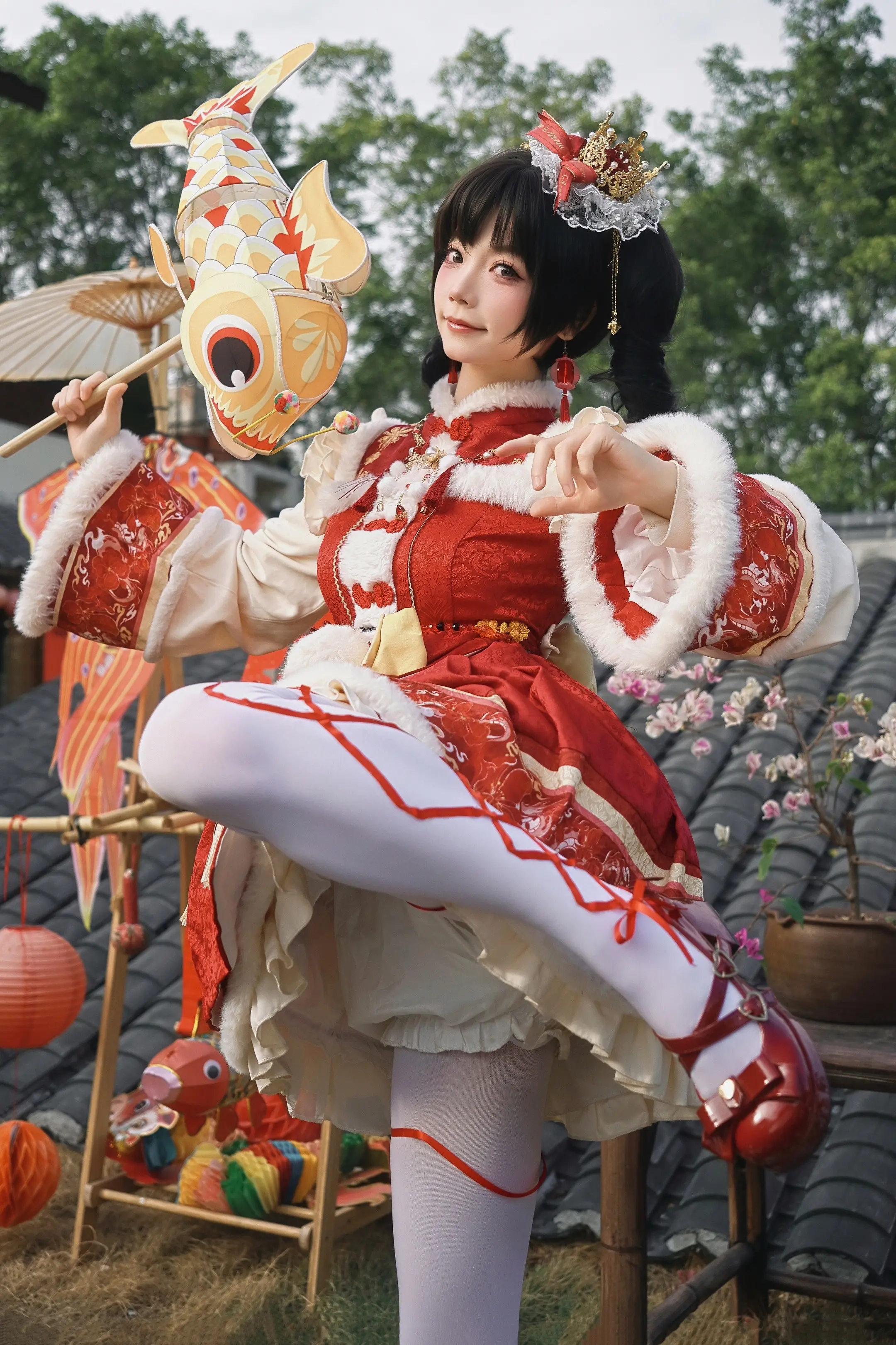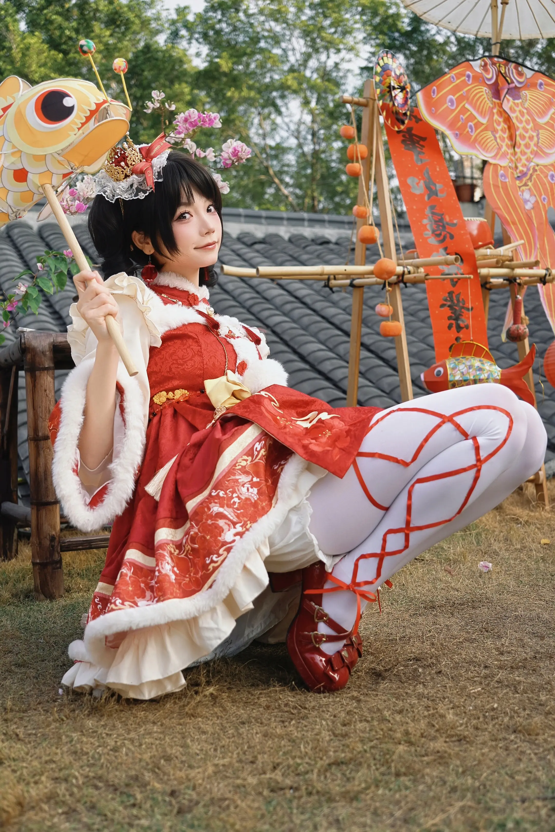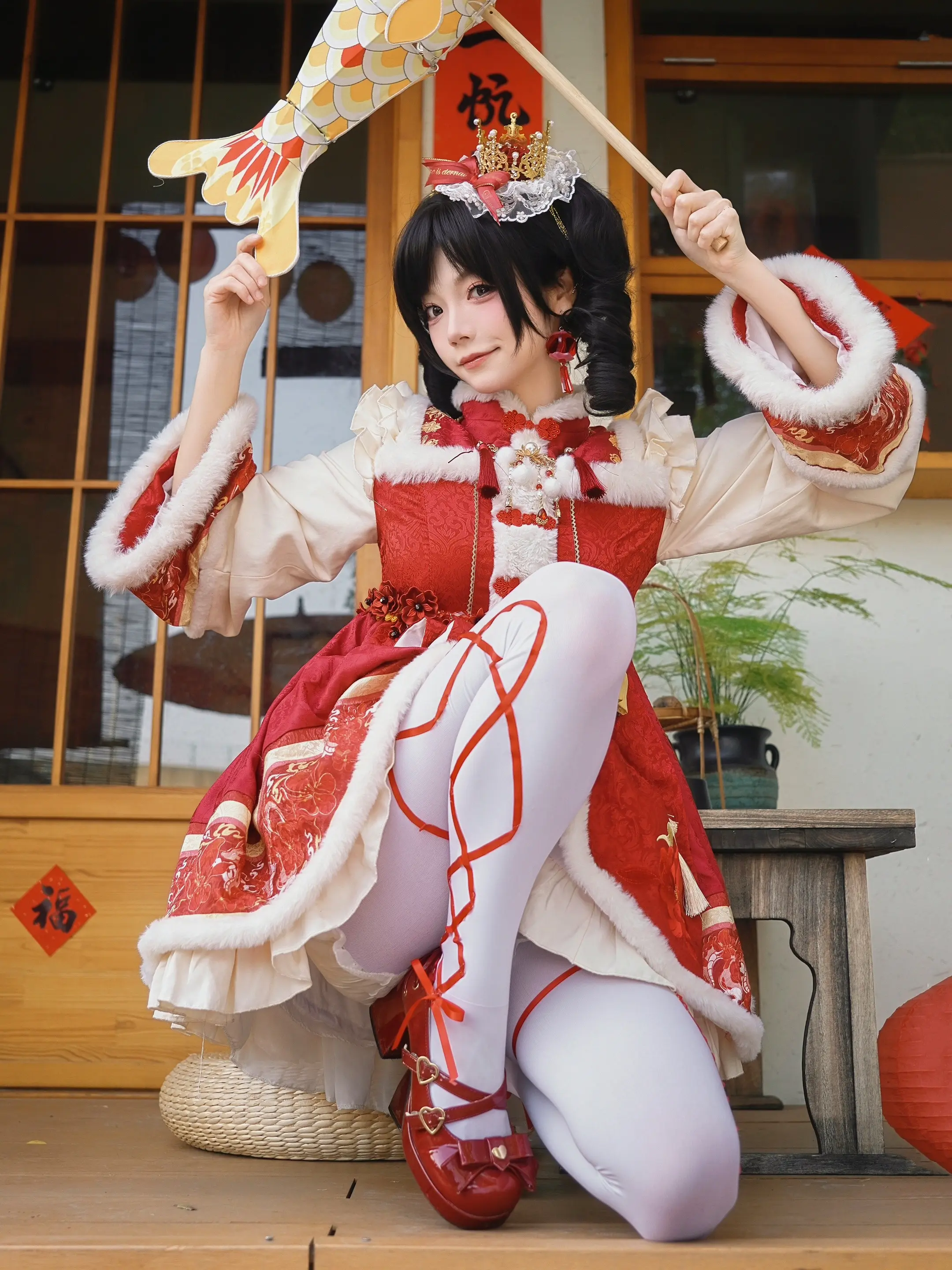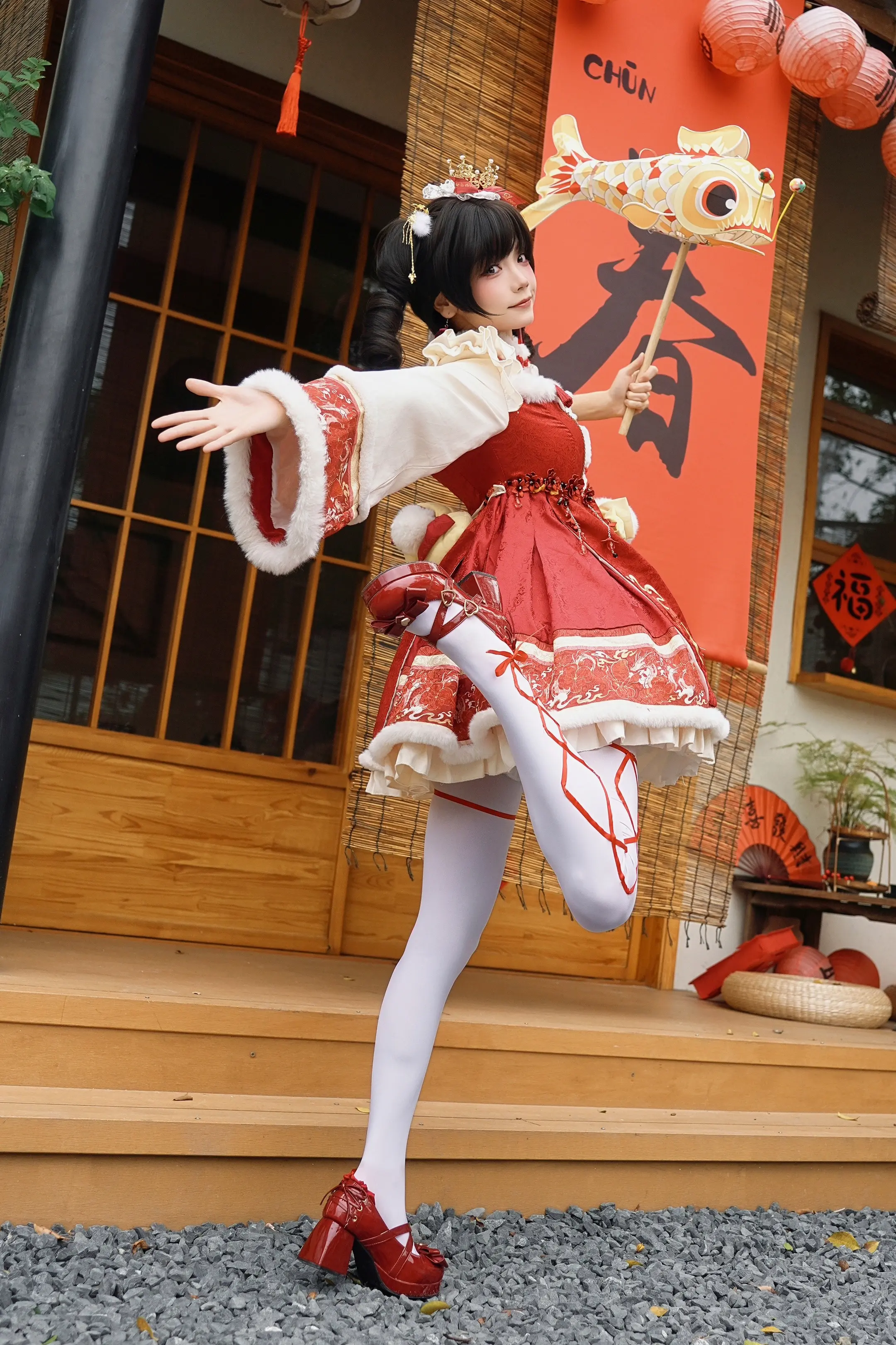 我妈说穿得像年画娃娃,直到我摆出这个姿势。上一条视频里的姿势照片📸 大家模仿前要记得先拉伸好!小心扭伤哦!
