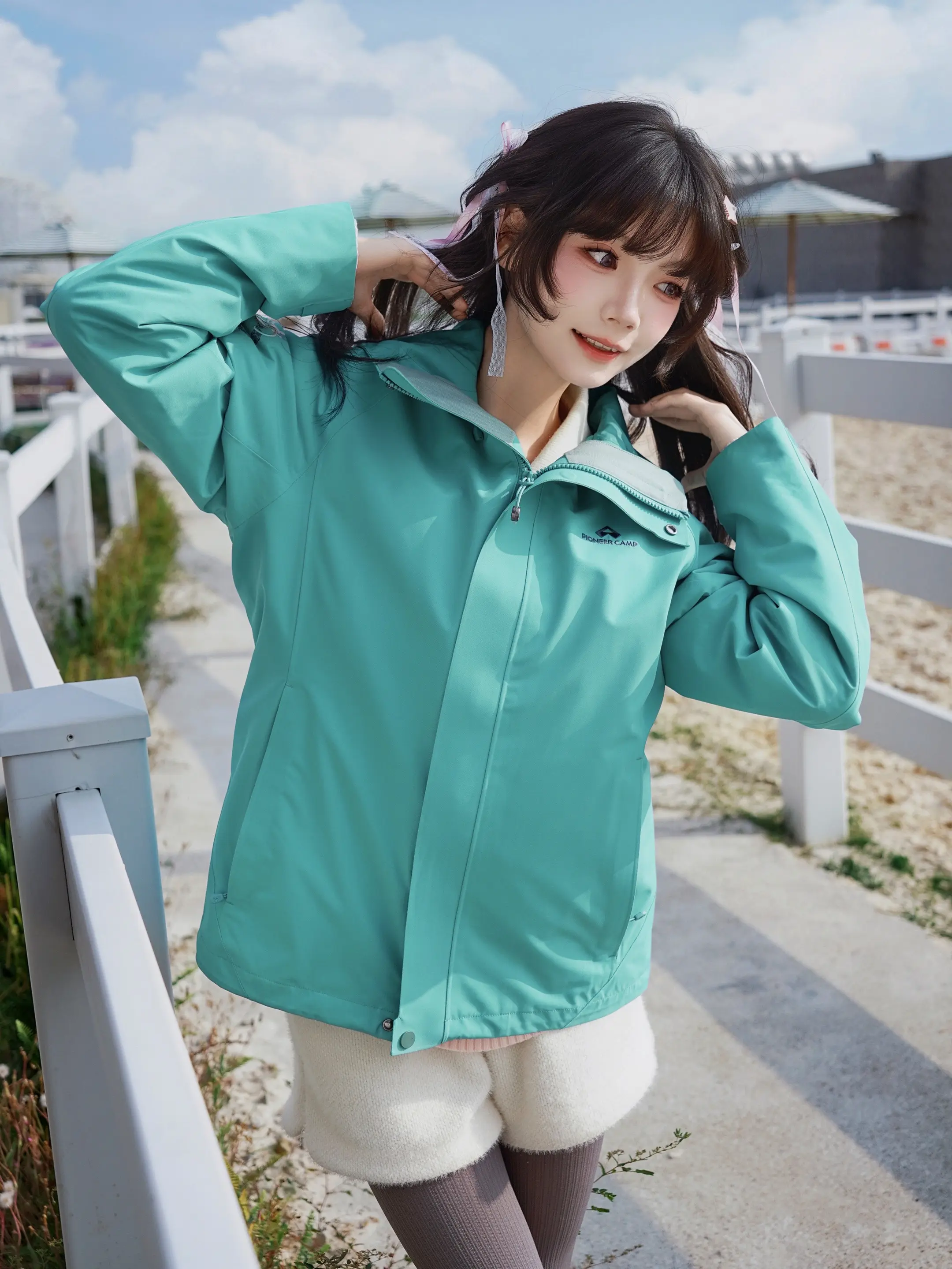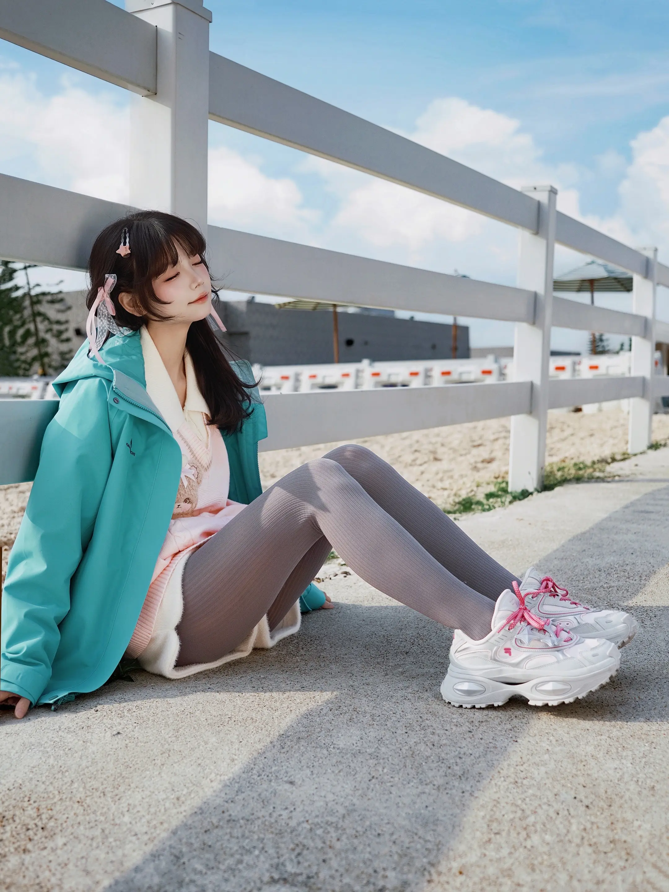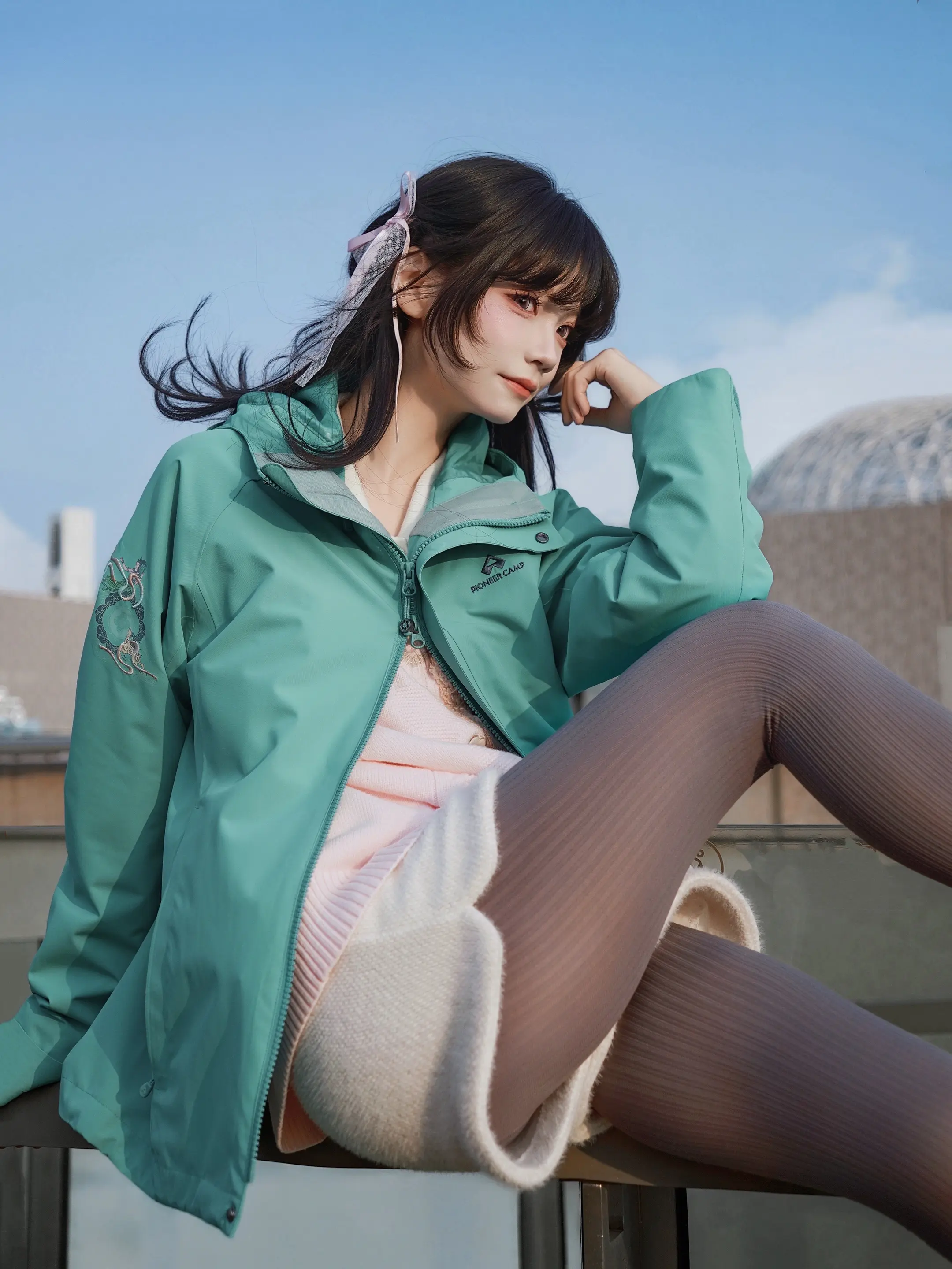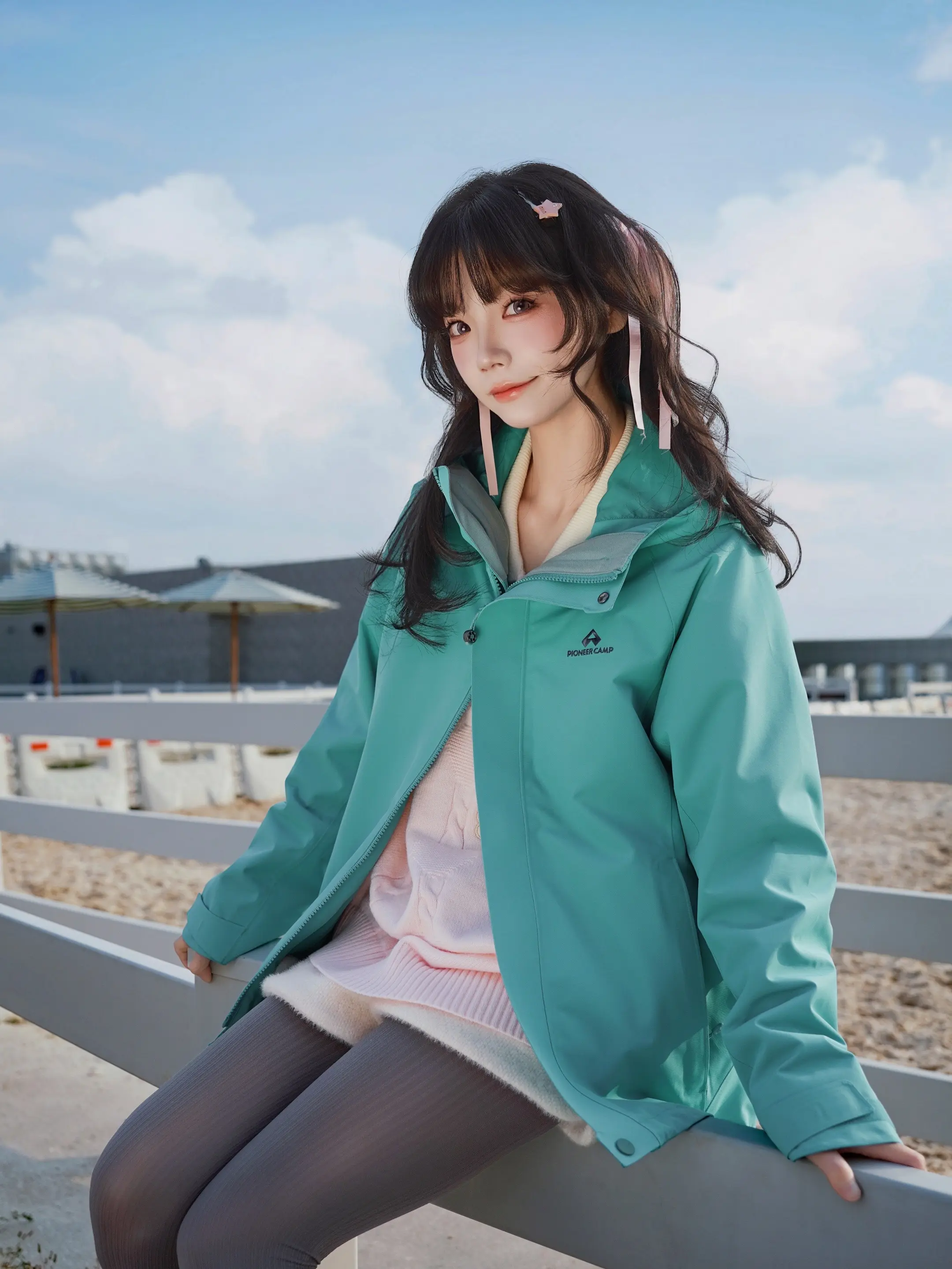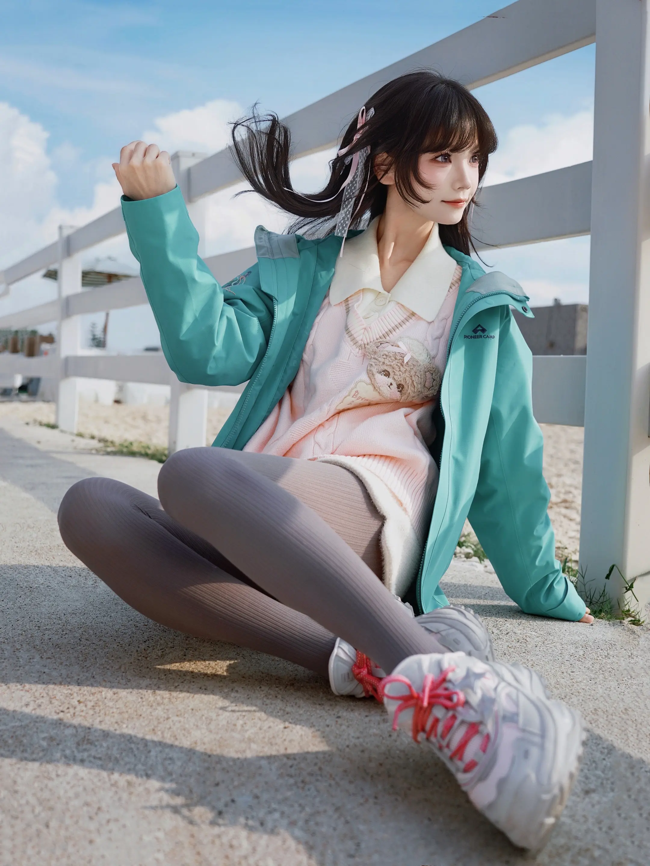 冬日暖阳下,温柔粉毛衣与白色围巾的完美搭配,尽显冬日温暖与甜美。