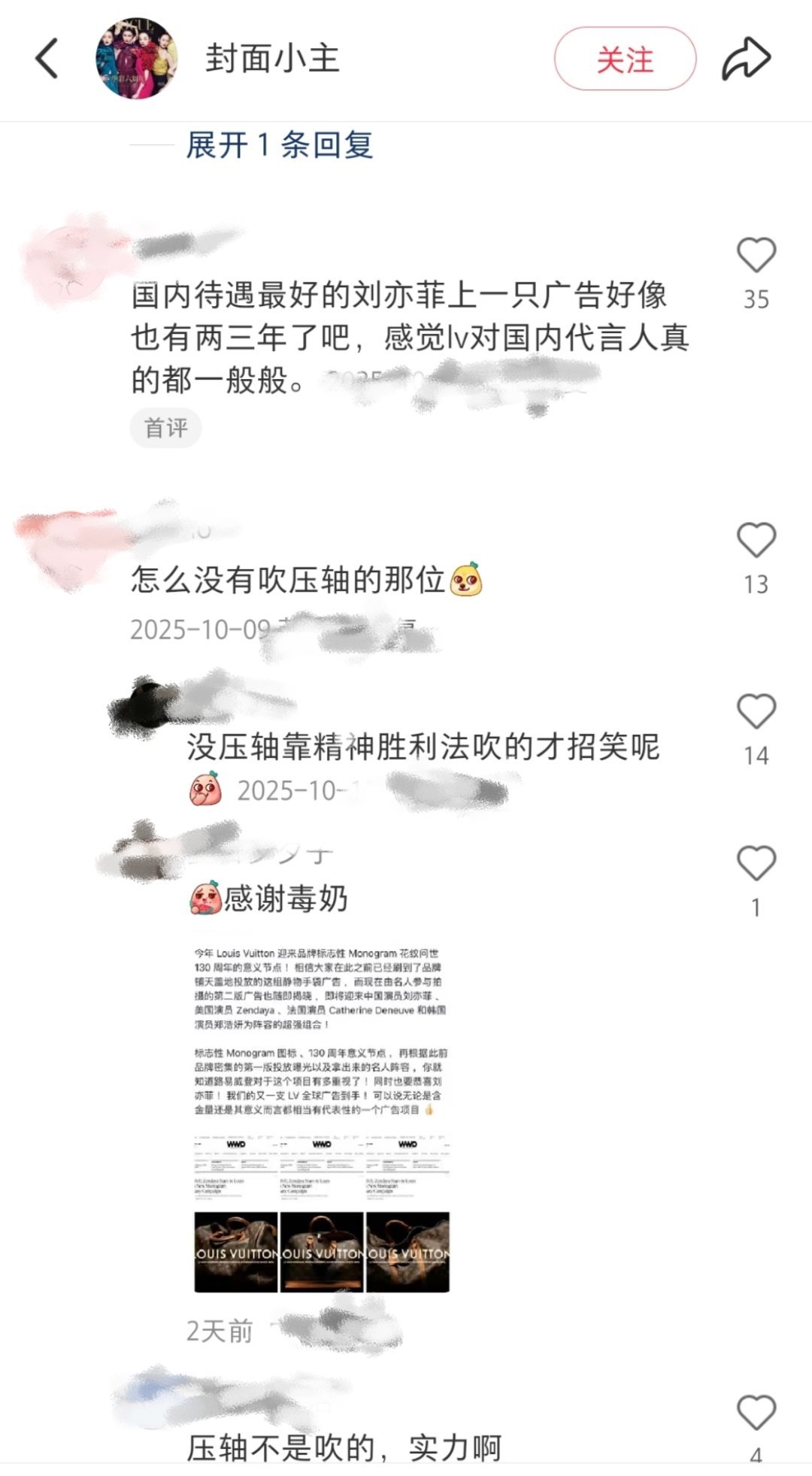除超模外亚洲品牌代言人就刘亦菲拍的LV广告最多,LV品牌代言人全球几十个吧,天仙存在感就是强,现在拍了重磅周年