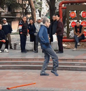 小伙假扮老人去公园跳舞,看看老人们什么表情。