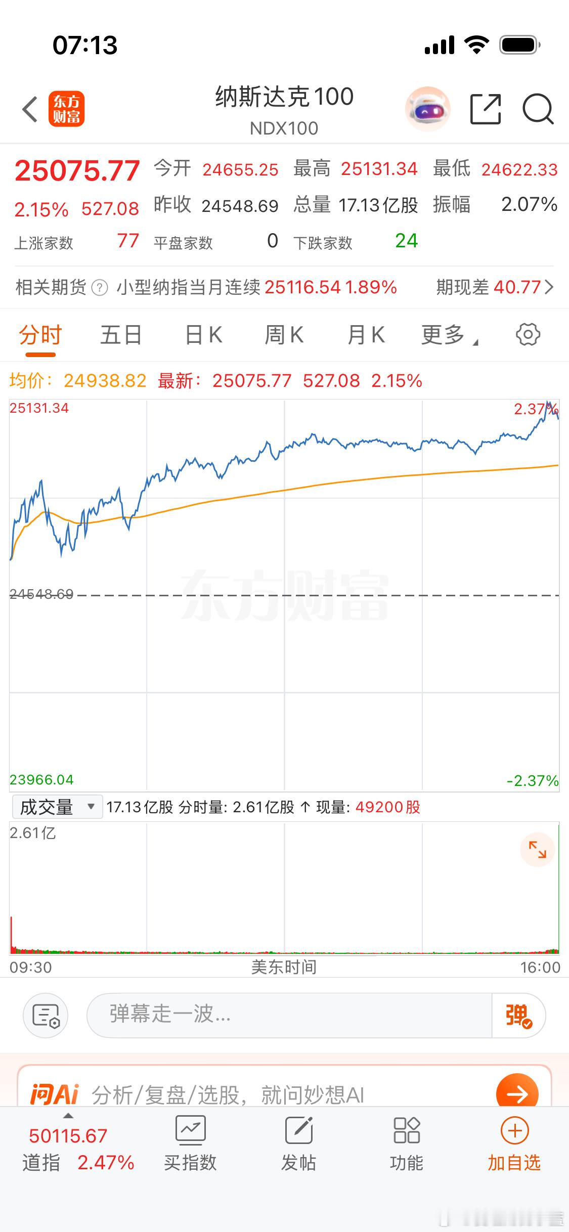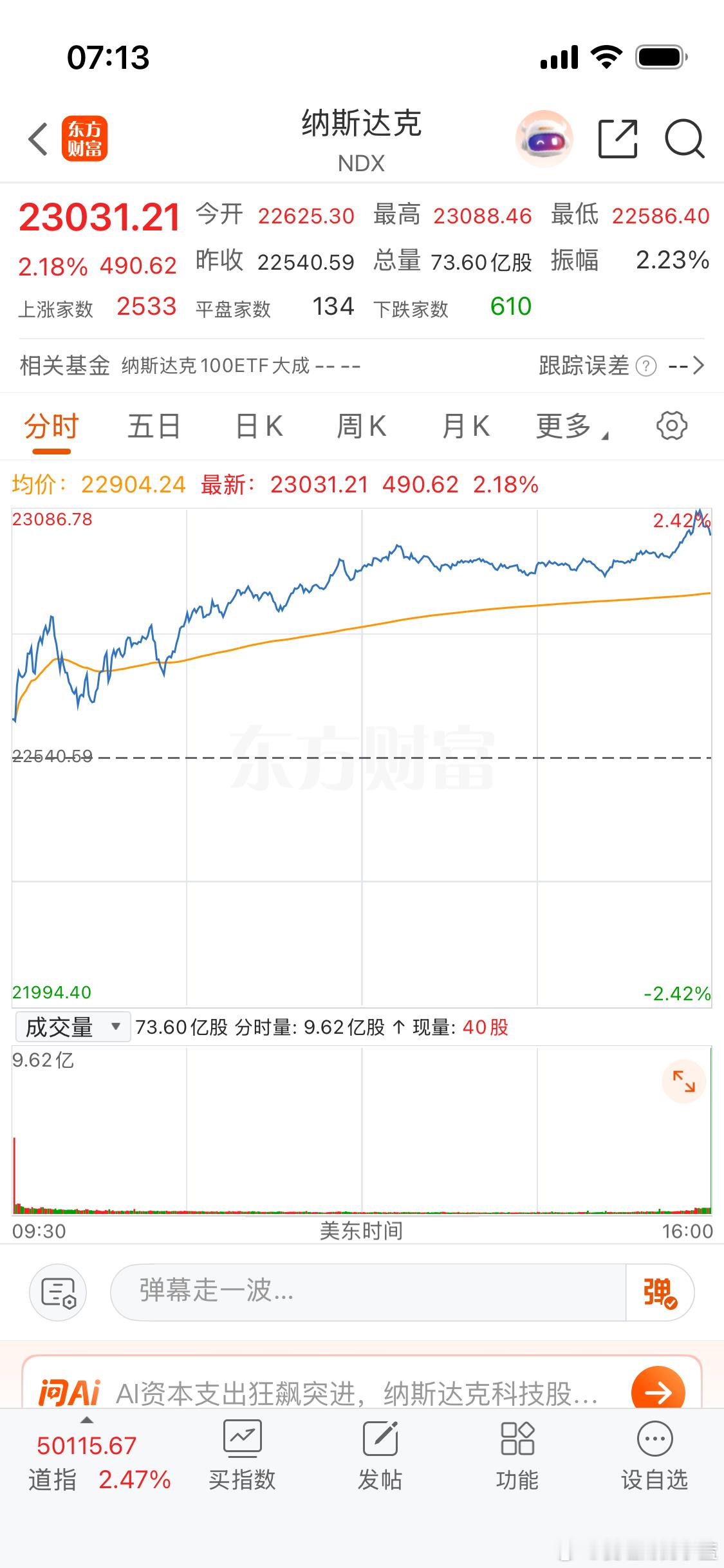 各位上市公司股东早上好。美股终于反弹了纳斯达克大涨2个点。拜托大家不要只看不互动