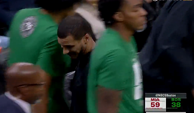 虎扑02月07日讯NBA常规赛,凯尔特人主场迎战热火的比赛正在进行中,目前上半场结束凯尔特人以38-59落后热火。