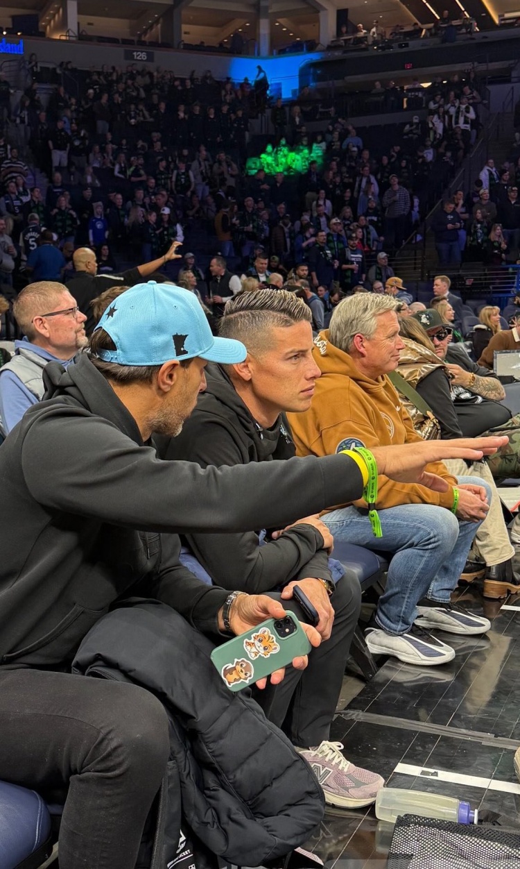 直播吧2月7日讯J罗已正式加盟美职联明尼苏达联俱乐部。今天,这位哥伦比亚球星到现场观看了明尼苏达森林狼队对阵新奥尔良鹈鹕队的NBA比赛。