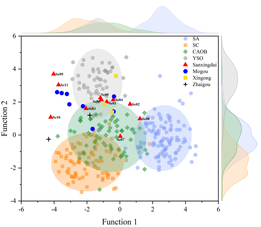 针对每一个样本,团队测量了包括锂、铍、钛、铁、铀等在内的57种微量元素。利用典范判别分析,研究团队将复杂的化学成分转化为地理特征。结果显示,该模型能精准区分出南亚、华南、中亚造山带和燕山四大矿源区,归类准确率可达90%以上。这是目前中国乃至东亚最完整的红玉髓矿源数据库,为溯源三星堆红玉髓珠、解析三星堆的外部联系提供了坚实的科学基础。