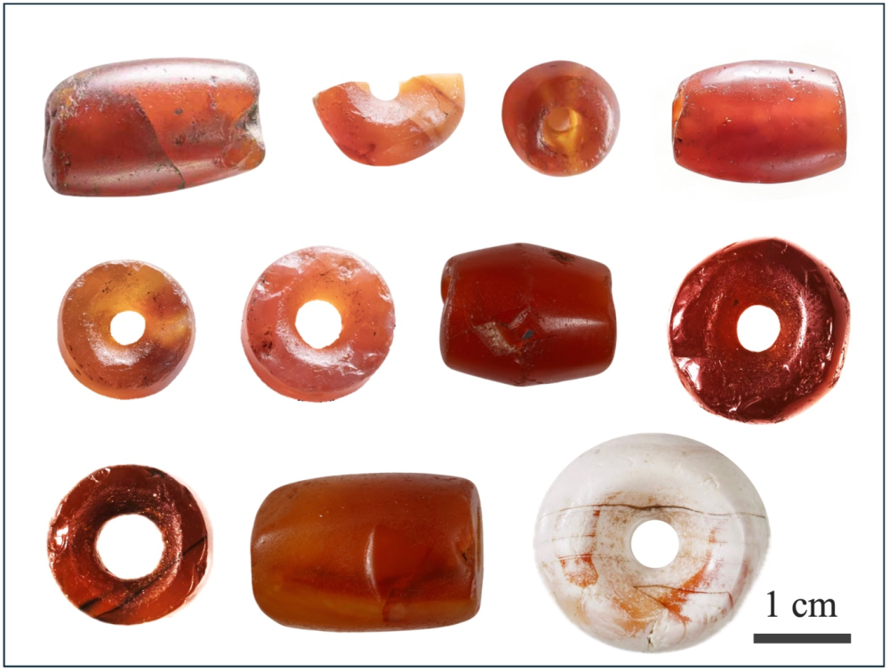 △三星堆祭祀坑出土的11枚红玉髓珠