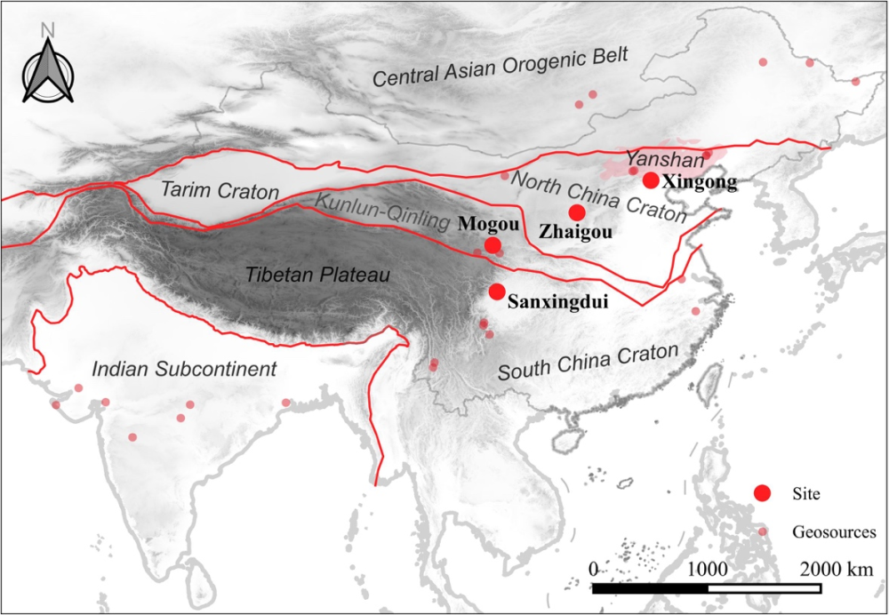 唐自华:我们分析了陕西寨沟遗址,新宫遗址,还有甘肃磨沟遗址。这些遗址出土的红玉髓的年代比三星堆都略早。它们的区域不同,地理位置所处的文化背景都有显著的差异,出土的红玉髓尽管长得不一样,但是它们都有一个共享的源区:北方,就是蒙古高原和燕山山脉。我们可以谨慎地推测,至少在三星堆祭祀坑存在的这个时间段里,已经能够看到它们有一个共享的物质交流网络,已经跨越了地区,跨越了文化。