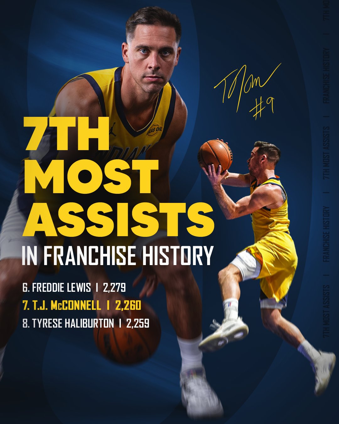 步行者更新社媒:祝贺TJ-麦康奈尔在球队历史上又向前迈进了一步,他的助攻数达到了2260次,并且还在不断增加。