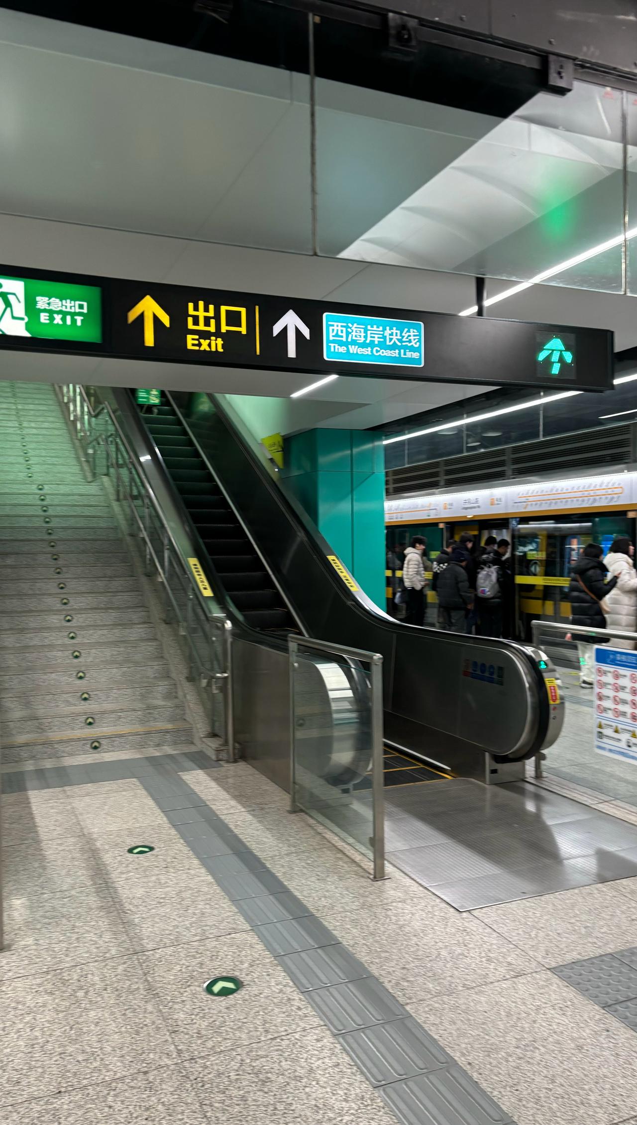 【青岛地铁啄木鸟】𝟓𝟏𝟑𝟕.吊挂 🚇1号线 井冈山路 图1: 站台端部吊挂右侧亮度不足造成亮度不均匀,也与另一端的同样内容吊挂整体亮度足够而不一致(图2),应修复 ———————————————————— 青岛地铁啄木鸟青岛地铁[超话]