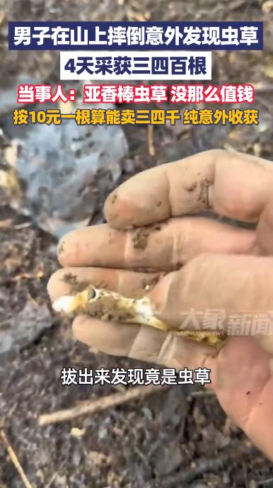 “这就是命啊!”贵州开阳,一男子上山游玩,不慎摔了一跤,结果却意外瞥见土里疑似虫子的东西,扯出来一看,竟然是虫草,四天挖出400多根!网友:好运来了挡也挡不住! 男子沿着山间小路慢慢前行,注意力大多放在周围的景致上,没太留意脚下的路况,脚下一滑,重重摔在了地上。 换做常人,摔倒后大概率会赶紧起身,拍掉身上的泥土,或许还会抱怨几句运气不佳。 但这名男子没有急着起身,手掌撑在地上时,无意间瞥见身旁的泥土里,露出了一点小小的、类似虫子的东西,只冒出来一个尖头,不仔细看根本发现不了。 他心里一动,起身蹲下身,小心翼翼地用手拨开周围的泥土,轻轻一扯,一根形状奇特的东西被完整拉了出来——竟然是虫草。 说实话,这一场摔倒确实充满了偶然性,但若不是男子摔倒后多留意了一眼,这份意外惊喜或许就会擦肩而过。 男子捧着手里的虫草,又惊又喜,他从小在山边长大,对山间的草木虫石多少有些了解,一眼就确认了这是虫草,也知道这种东西有着不错的药用价值,若是野生的,价值会更高。 惊喜过后,男子没有就此止步。 他想着既然这片山间有虫草,或许还能找到更多,于是从第二天开始,他每天都上山,沿着第一次摔倒的周边区域仔细搜寻。 山间的路并不好走,杂草丛生,想要在密密麻麻的草丛和泥土里找到小小的虫草,并不容易,每一根都需要弯腰、拨开泥土仔细查看。 就这样,他日复一日,连续四天进山搜寻挖掘,哪怕累得腰酸背痛,也没有放弃。 功夫不负有心人,四天下来,他累计挖出了四百多根虫草,看着自己的收获,男子心里满是欢喜。 这段经历后来被传播开来,有媒体也报道了此事,只不过不同报道里,对男子的称谓略有不同,有的称他为陈先生,有的则称他为李先生,挖掘的数量也有两三百根的说法,但核心都是围绕着他摔跤发现虫草、连续四天挖掘收获颇丰这一事实。 一开始,不管是男子自己,还是看到报道的人,都以为他挖到的是名贵的冬虫夏草,不少人都羡慕他的好运气,觉得这简直是“老天爷送财”。 但后来经过确认,大家才知道,他挖到的其实并不是冬虫夏草,而是一种名为亚香棒虫草的品种。 这种虫草虽然也有一定的药用疗效,但稀缺程度远不如冬虫夏草,价格也相对低廉,一根大概也就十块钱左右。 即便知道了虫草的真实品种和价值,男子也没有丝毫失落。 按照四百多根、每根十块钱计算,这些虫草大概能卖三四千元,折算下来,相当于他这四天每天能有一千元左右的收入,对于添补家用来说,已经是一笔不错的意外之财。 男子这份心态很可贵,没有因为价值不及预期而抱怨,反而能坦然接受这份意外收获,这份从容比收获本身更让人佩服。 随着这件事的热度越来越高,网友们也纷纷展开了讨论,大多是羡慕男子的好运气,还有人调侃说,他这一跤,相当于摔出了好几天的上班工资。 也有一些网友科普,提醒大家,真正的冬虫夏草是国家重点保护野生植物,未经许可擅自采挖是违法行为,还会破坏生态环境,而男子挖到的亚香棒虫草虽然不属于保护品种,但也需要谨慎采挖。 其实仔细想想,男子能有这份收获,固然有运气的成分,但更多的是靠他的细心和坚持。 若是他摔倒后只顾着抱怨,没有留意到泥土里的虫草,若是他发现一根后就半途而废,没有连续四天进山搜寻,也不会有这样的收获。 而且,他从小在山边长大,熟悉山间环境,能准确识别虫草,这也是他能抓住这份意外惊喜的关键——若是换做不熟悉山野的外行,即便摔倒在虫草旁边,大概率也不会发现这份隐藏的惊喜。 此外,这件事也给大家提了个醒,野外活动时,一定要注意自身安全,走路时留意脚下,避免发生摔倒等意外。 同时,对于不熟悉的动植物,也要保持谨慎,不要随意采挖、食用,避免引发不必要的风险。 男子的这段经历,没有惊天动地的情节,却因为这份不期而遇的惊喜,被很多人记住。 它也告诉我们,生活中,很多意外的美好,往往就藏在不经意间,只要我们多一份细心、多一份坚持,或许就能抓住那些藏在平凡日子里的小幸运。 今天的分享到这里就结束了,大家对此事有何看法,欢迎在评论区留言和讨论,感兴趣的可以点击头像加关注,我将每日更新优质内容,我们下期见。