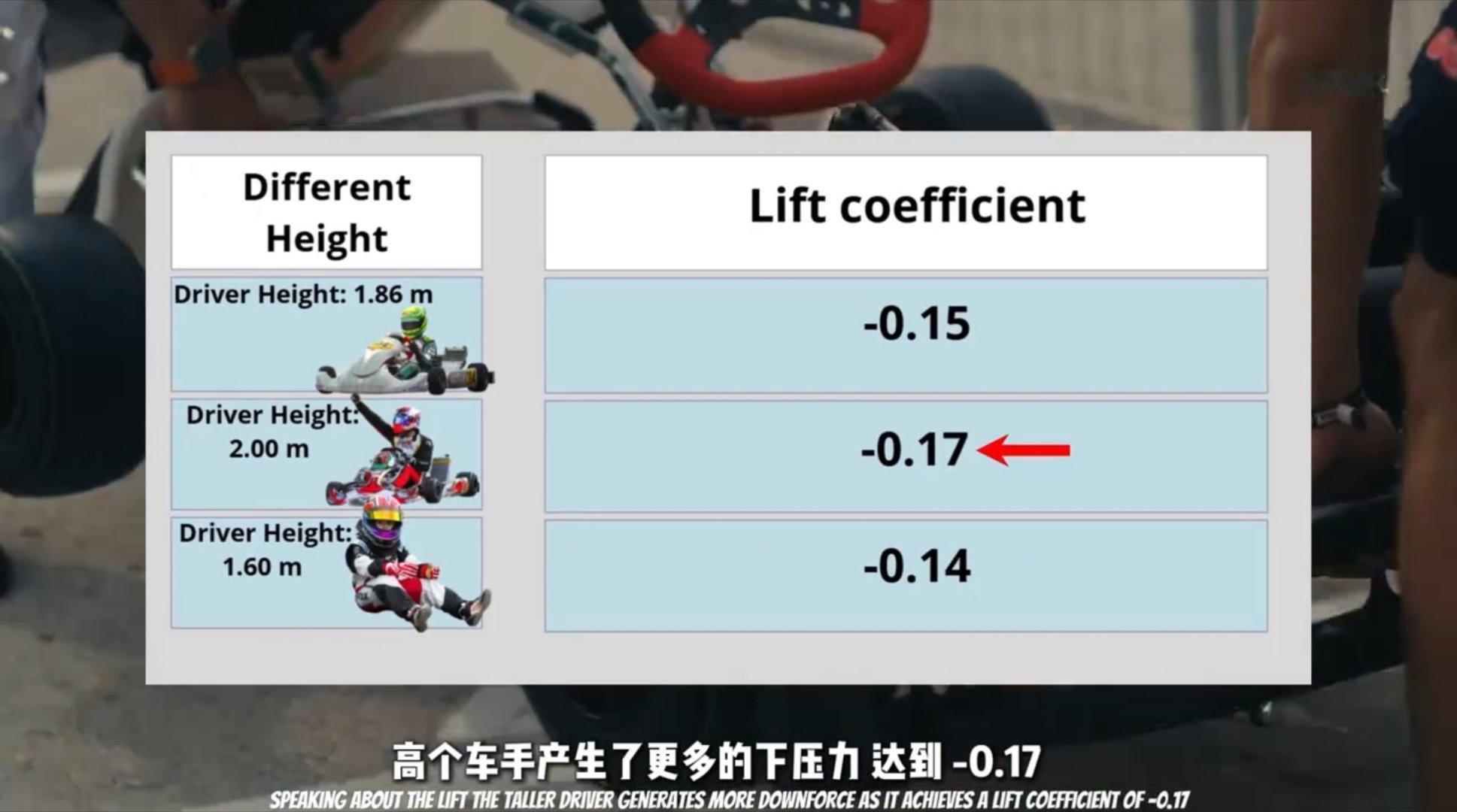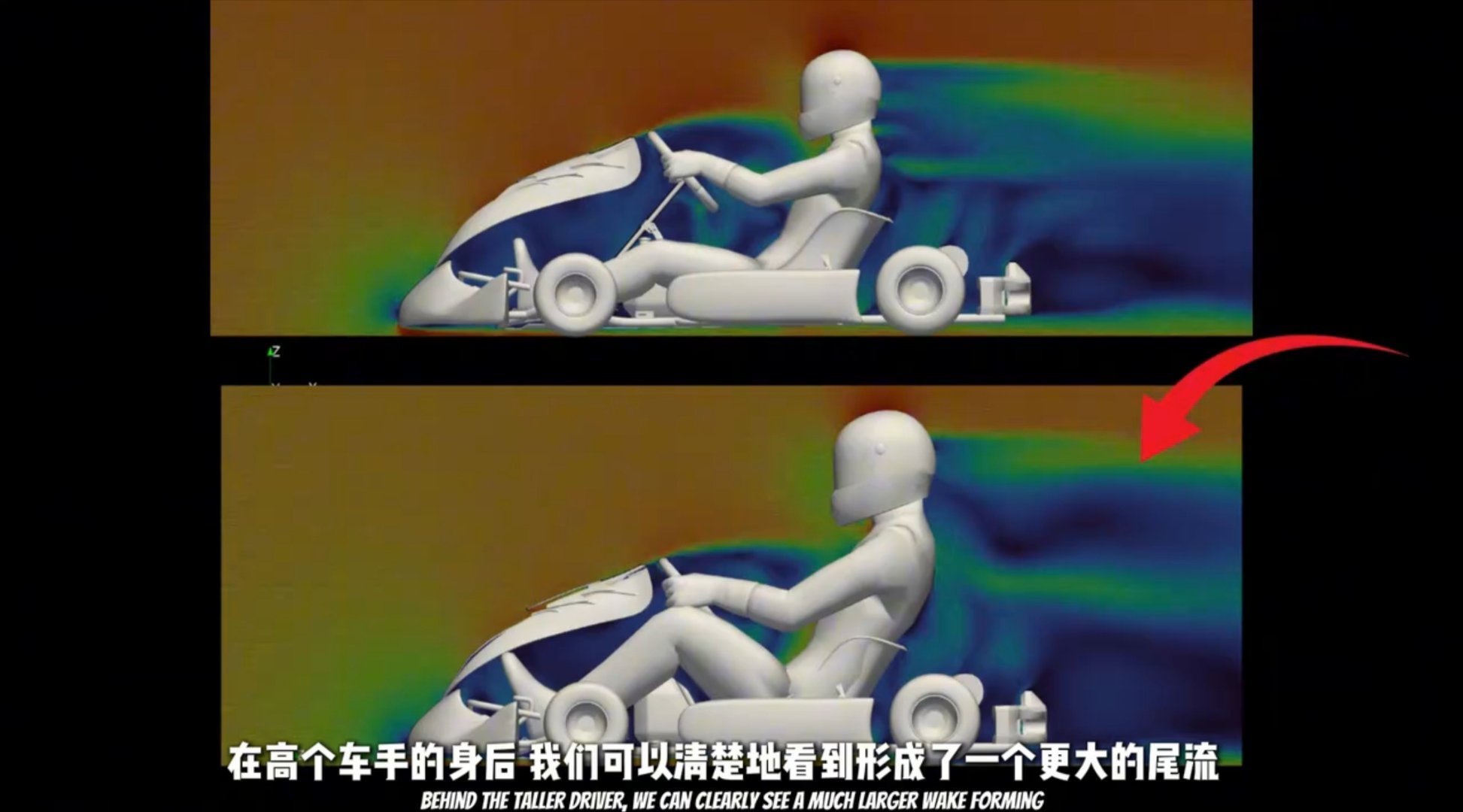 刚刷到个视频,从空气动力学角度,分析车手身高对卡丁车风阻的影响。