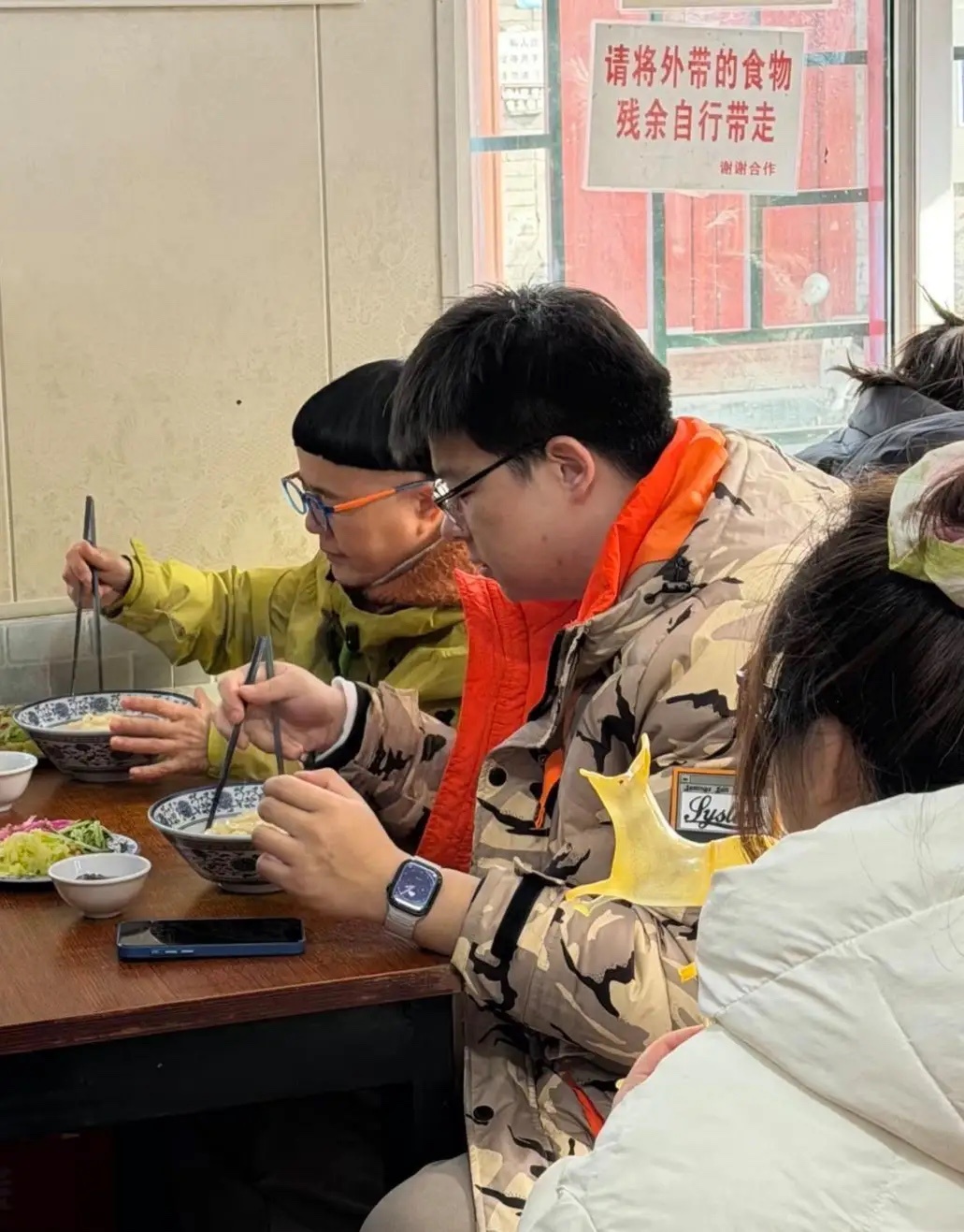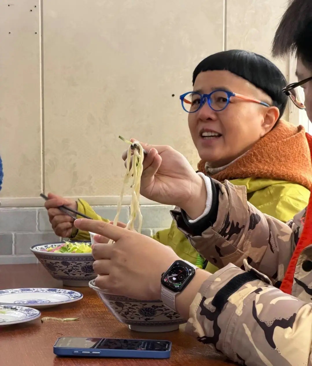 60岁金龟子现身北京胡同一家餐馆吃炸酱面,她留着几十年不变的锅盖头发型,打扮有点