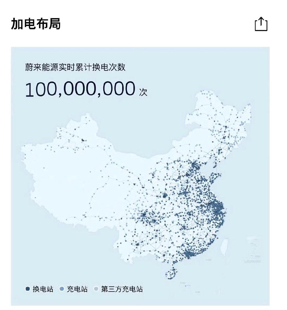 蔚来在全国完成第1亿次换电!意味着有1亿次蔚来的车辆完成了换电工作! 这个就如同加油站一样,油车加的是油,蔚来提供的是电,目前看再快的充电技术也没有换电来的迅速。 很多人介绍蔚来的换电技术的时候,老是忽略蔚来的车本身它也是可以充电的,作为补能方式的重要补充,蔚来的模式无疑是跑通,最重要的是为公司带来了大量的现金流。 各位是怎么看的?欢迎评论区留言。