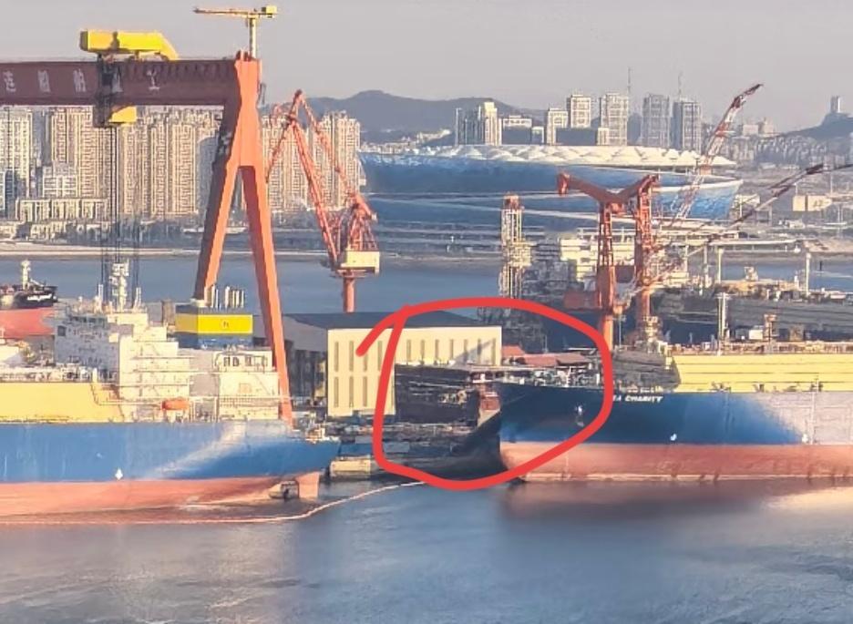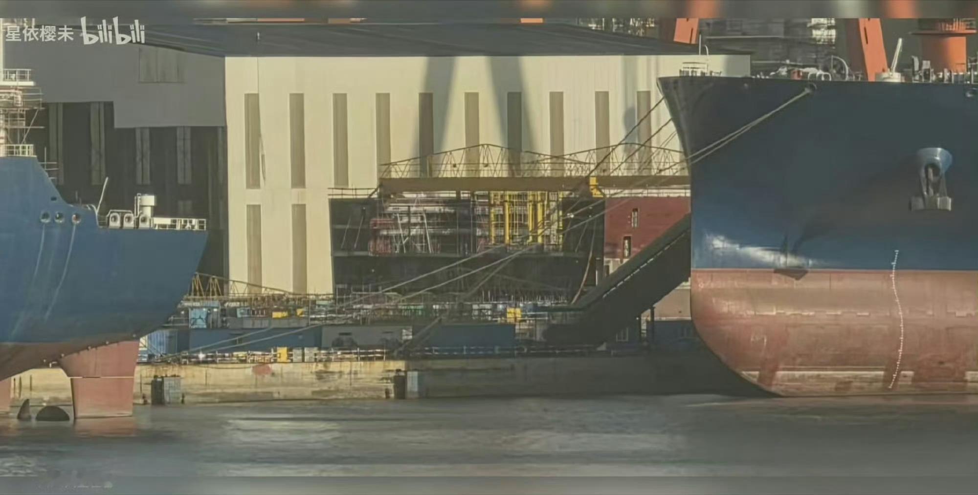 004的机库是二层甲板,机库上还有二层甲板,与图三画的结构不同!现在已入坞搭载的模块再上面就是飞行甲板了
