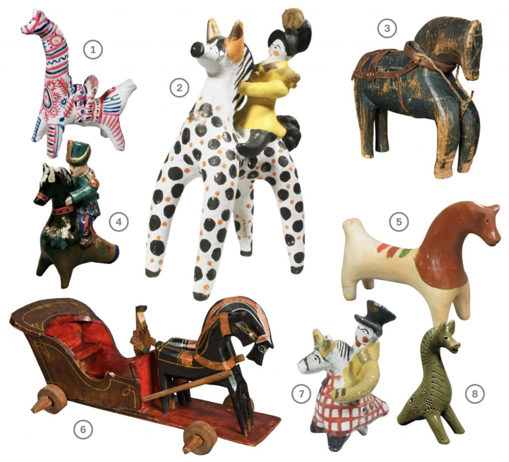 马的乡土玩具,全世界那的都有,如果想用玩具给自己过年增添点异域风情,俄罗斯的基洛夫市的迪姆科沃小泥马是颇有特色。