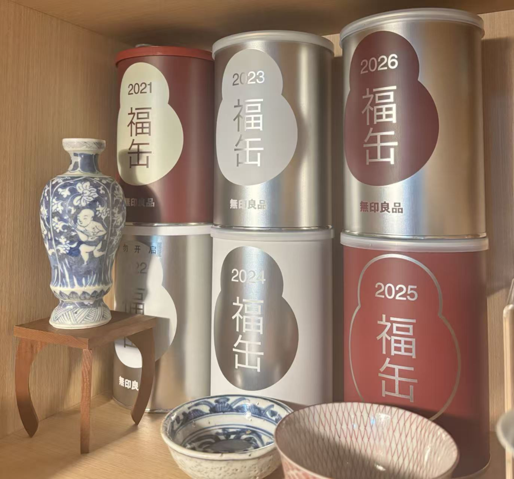 比如MUJI每年年关都会推出福缶盲盒,里面带一乡土玩具和优惠卷,别说在日本了,在中国都老卖断货。而且其中不少玩意儿还跟社会保障体系挂钩,出自残障人士之手。