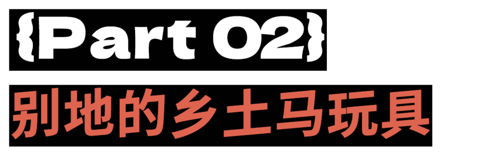 除了上述两种玩具之外,还有山西的布马、陕西的面花马等等,他们按材质来说主要可以分为6类:泥土与陶瓷、竹木、布制、纸质和包括面团、草药在内的各种其它素材,由他们制成乡土玩具在中国延续千年,民众就地取材,在节庆之时制作,承载对未来的美好想象。