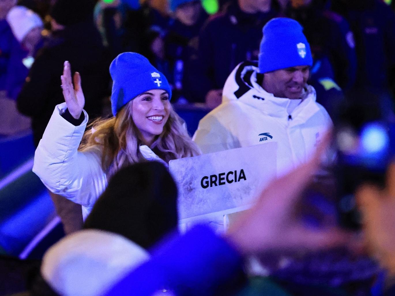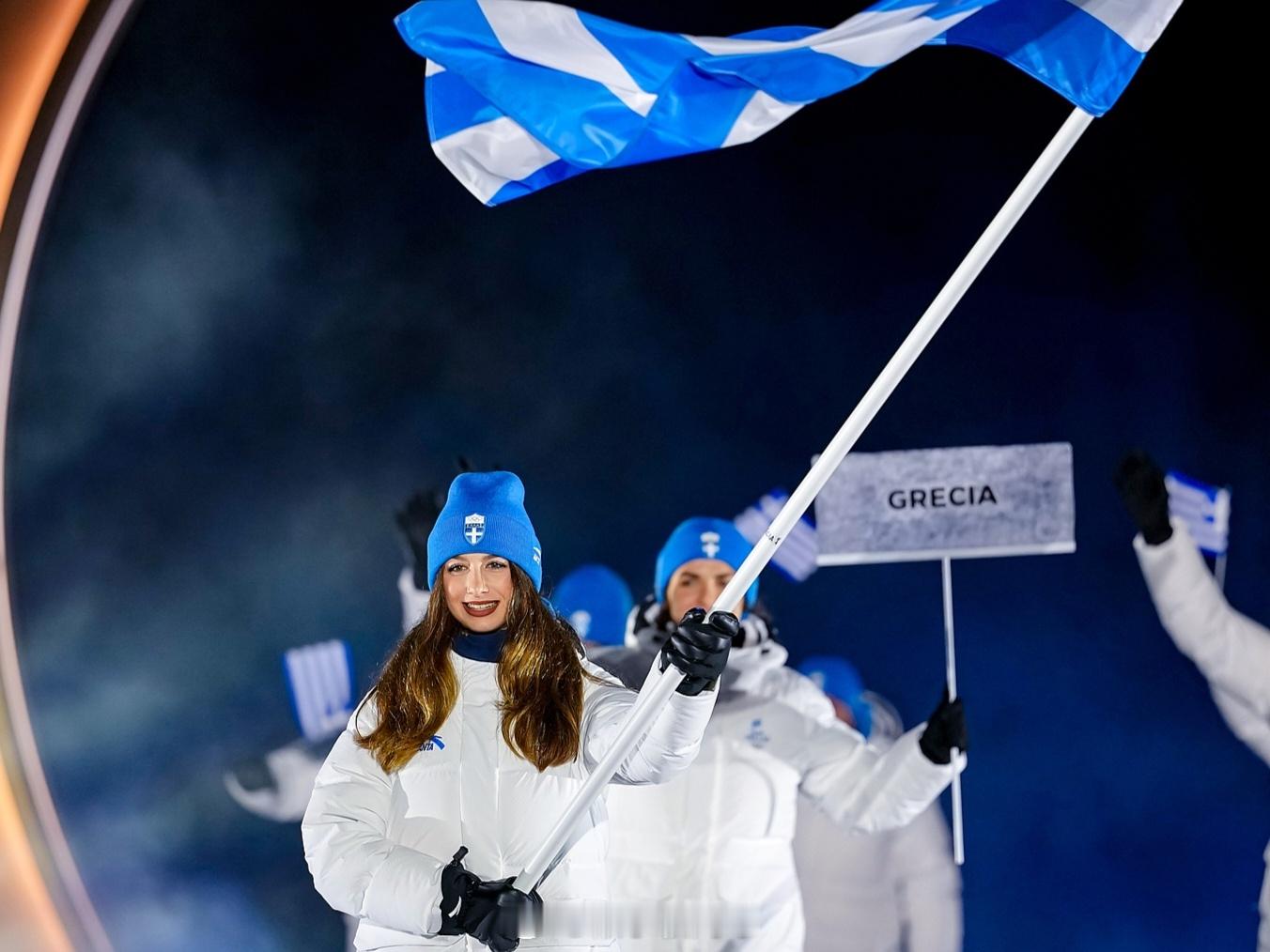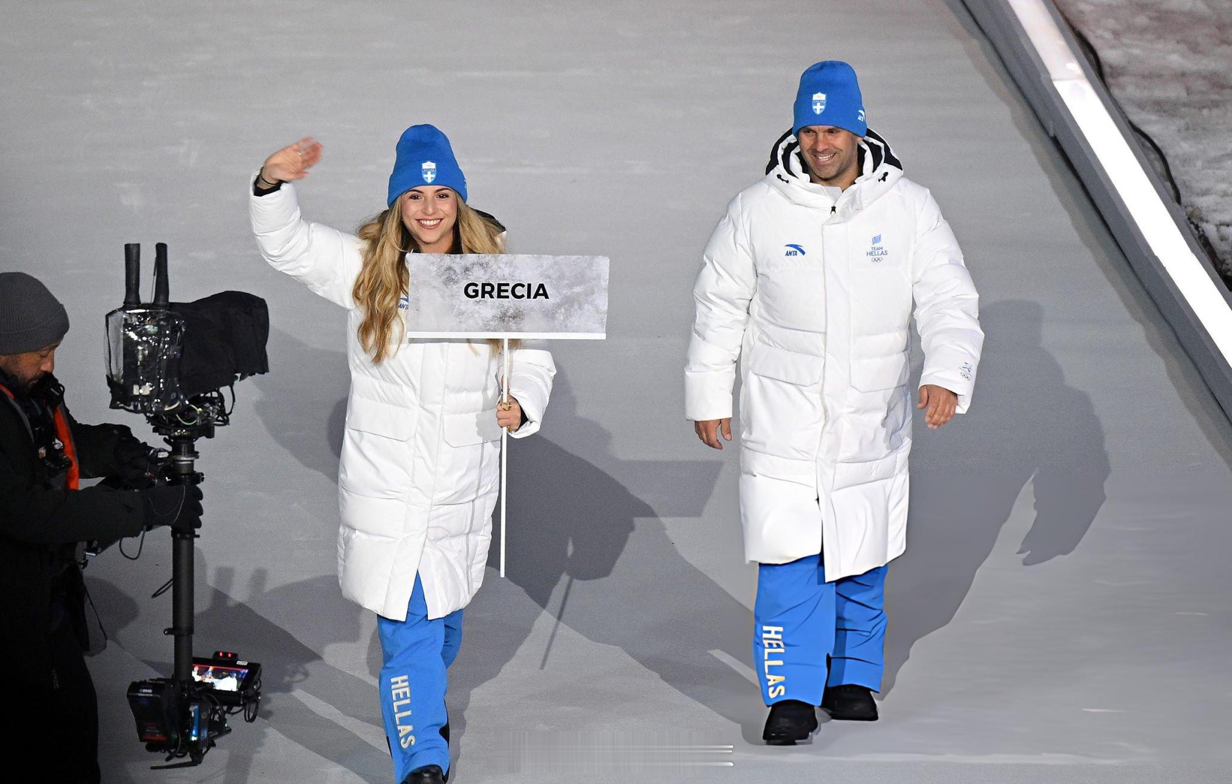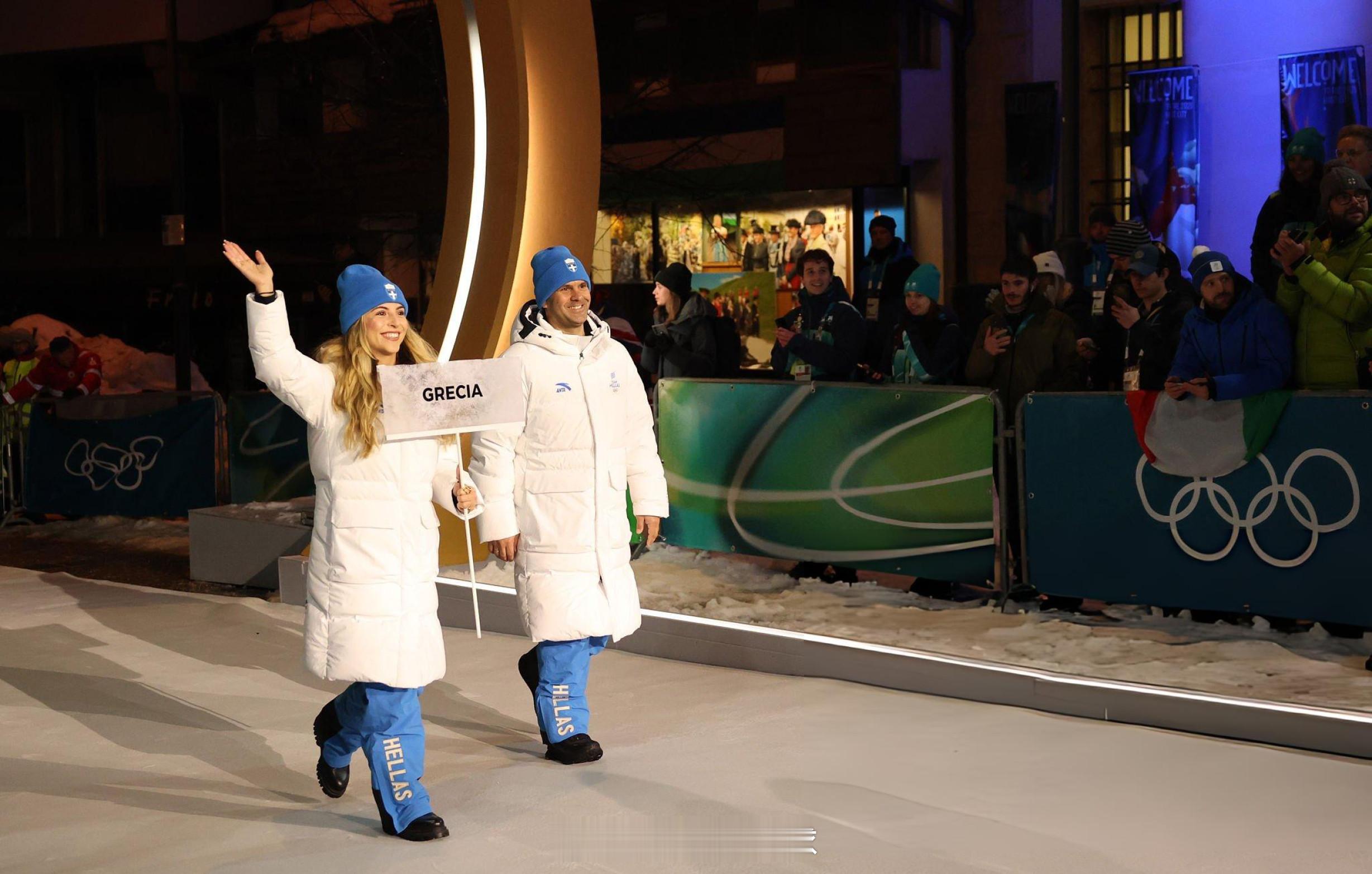 米兰冬奥会盛大开幕式上,希腊代表团作为首支队伍入场,蓝白队服在灯光下格外醒目。旗手高举国旗走在前列,白色羽绒服胸前的安踏标识清晰可见。这一刻,既是奥林匹克传统的延续,也让世界在冬奥开篇,便记住了中国品牌的身影。