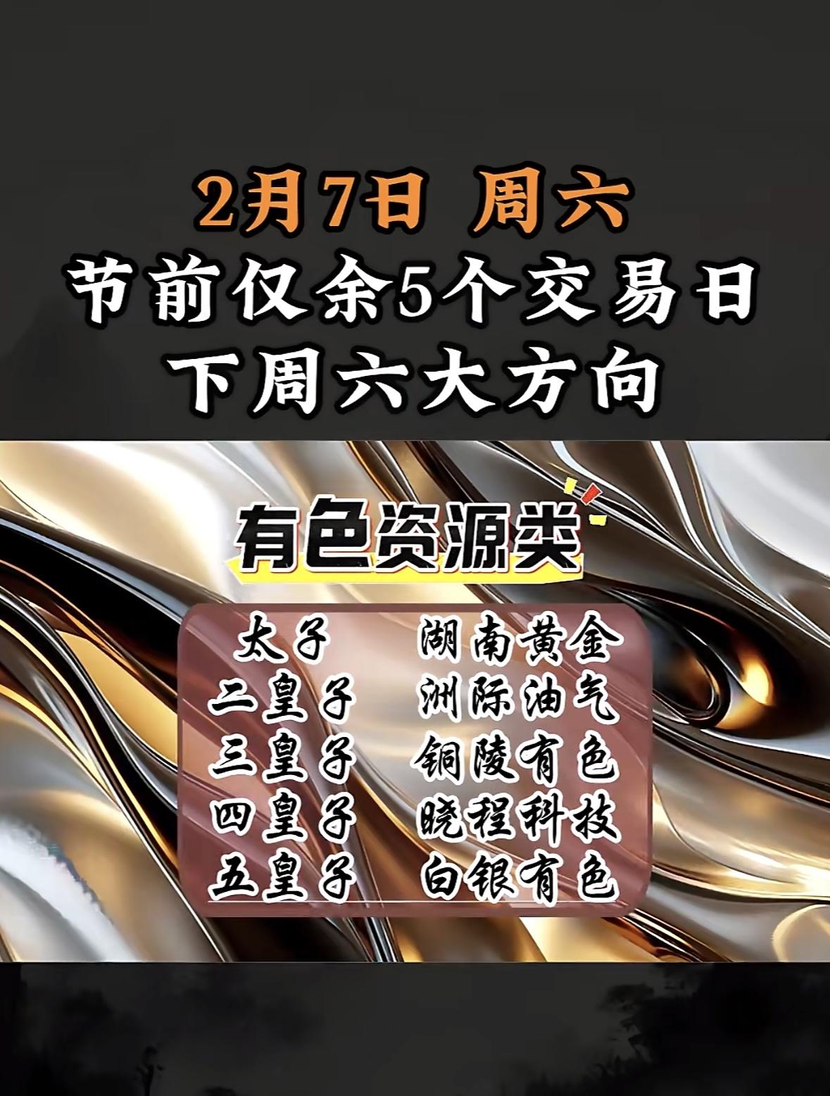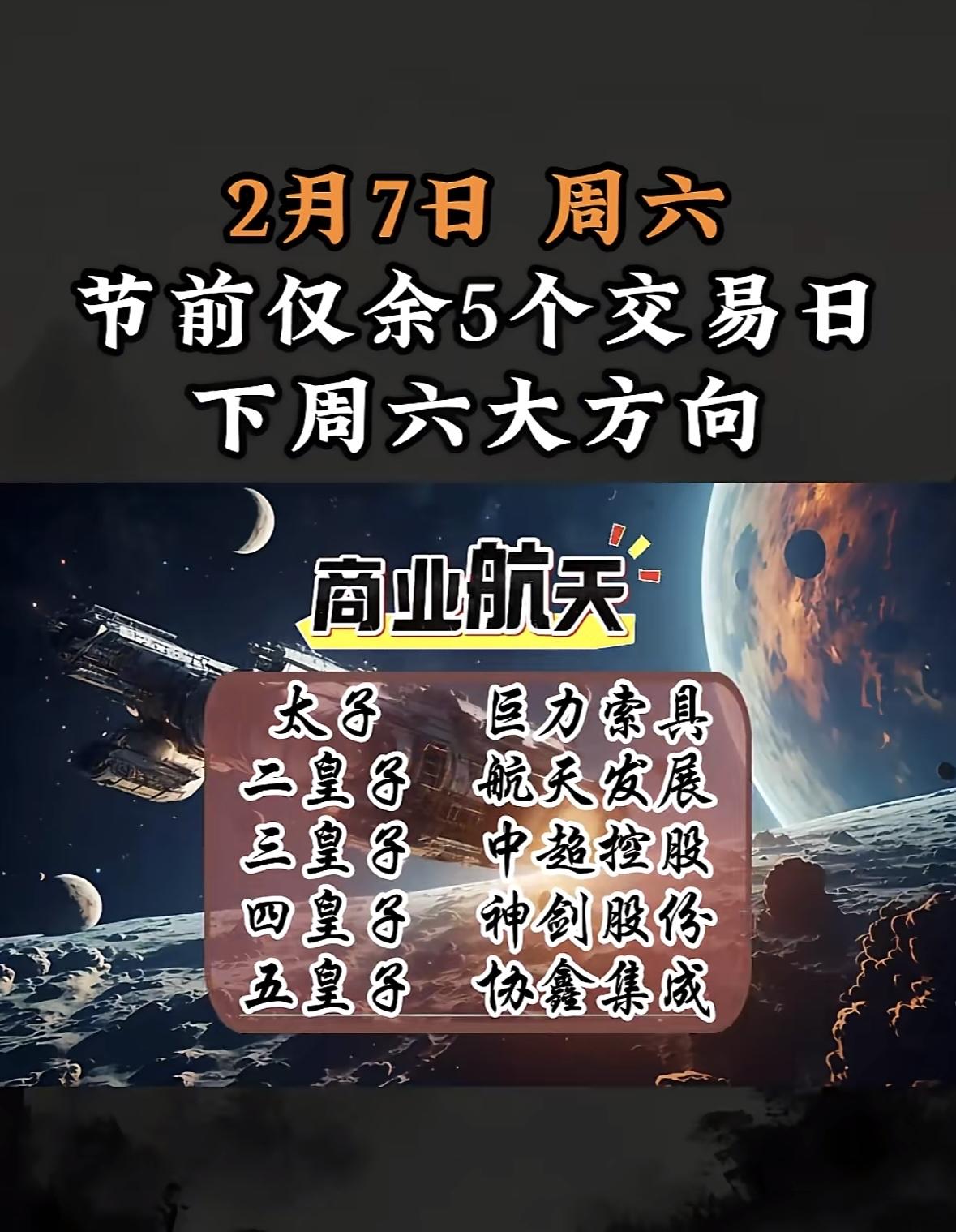 2月7日,节前仅剩5个交易日,有色资源类大方向分析 "节前交易聚焦商业航天,多股联动引关注,市场暗流涌动待爆发。"