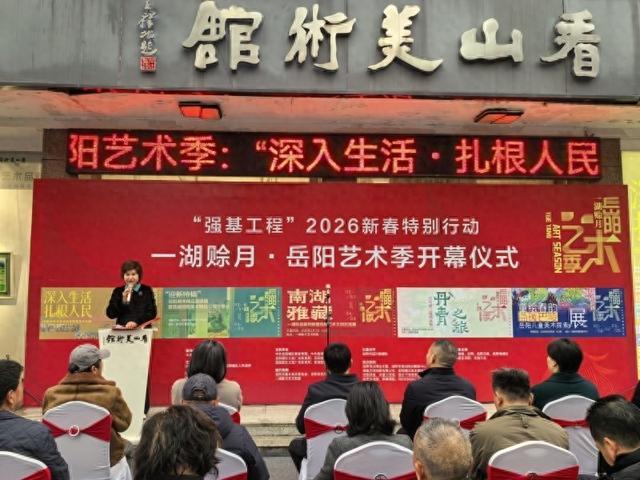 岳阳日报2月6日讯(全媒体记者陈东蕾通讯员张琼辉)2月5日,由中共岳阳市委宣传部指导、岳阳市文学艺术界联合会和岳阳楼区人民政府联合主办,岳阳市美术家协会提供学术支持,市青年美术家协会、市花鸟画学会、一湖赊月艺术部落联合承办的“强基工程”2026新春特别行动——一湖赊月·岳阳艺术季,在岳阳市文联看山美术馆正式启幕。