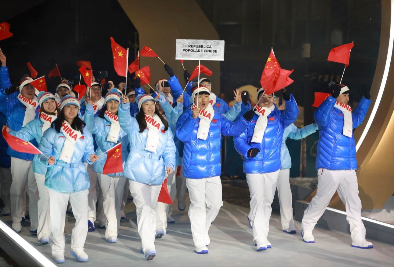 米兰冬奥会 开幕,中国体育代表团入场,一抹蓝令人印象深刻,期待接下来十几天中国冰
