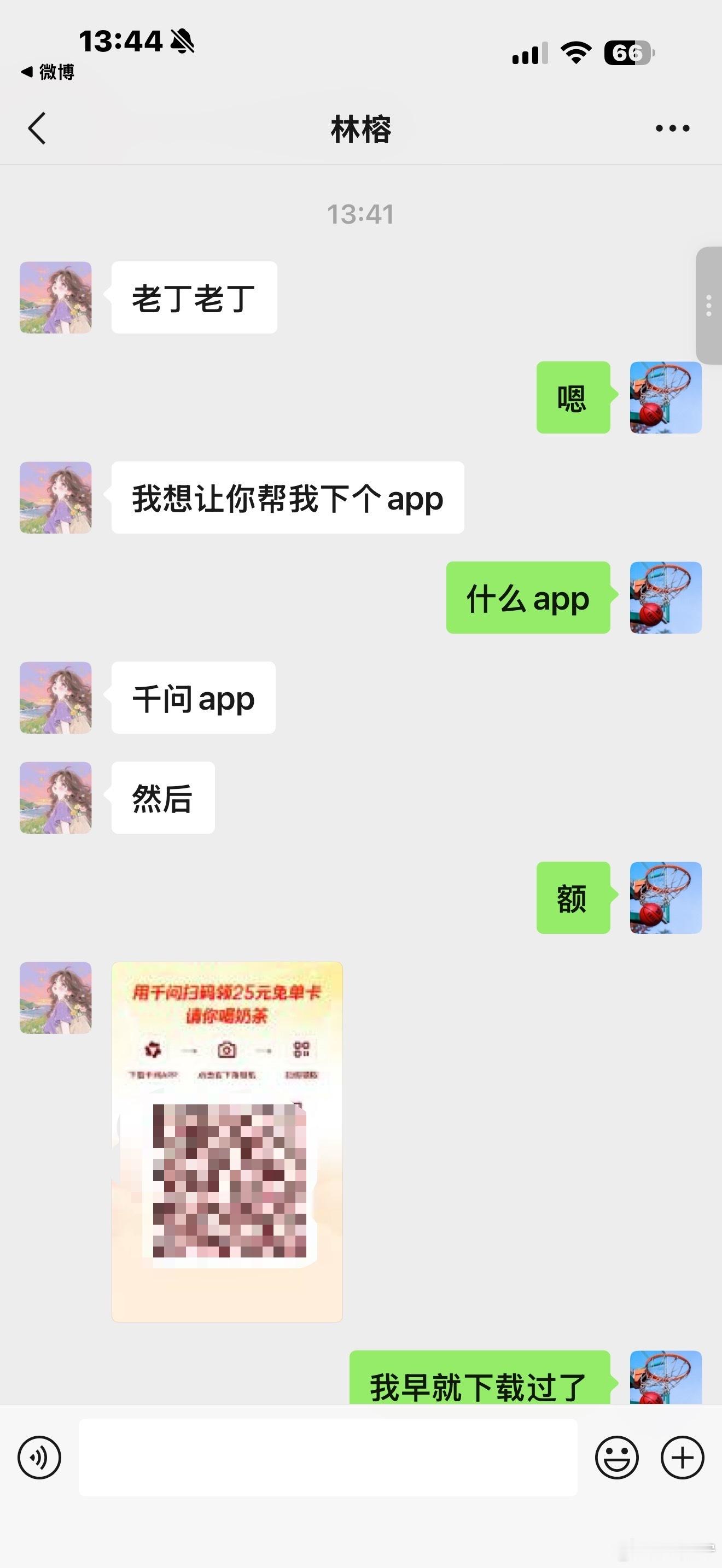 大中午睡的正香,突然被朋友的微信吵醒,竟然是要我帮她下载千问 APP,哈哈哈,我早就下载了好吗千问请的奶茶我都已经喝完了,你这速度是真不行各位朋友抓紧时间上千问去薅羊毛吧。我这里也给大家抽个奖吧,转发,我抽5位,一人再送25元 抽奖详情