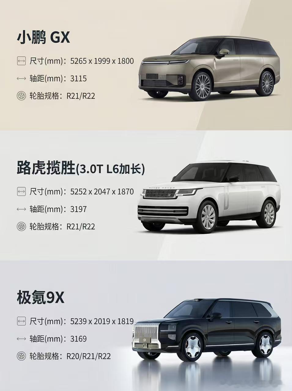 别看路虎揽胜了,看看咱们的“大湾区揽胜”!实车比想象中还要大:5265 x 1999 x 1800mm,轴距 3197mm。动力组合:超级增程/纯电,503 Ps,695 N·m。轮胎:22英寸大轮毂智驾:四图灵 l4💬 坐等上市价格,大家觉得值得买吗?大家可以觉得多少价格可以冲?小鹏GX小鹏汽车