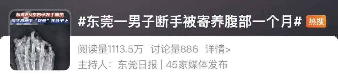 医生将断手“寄养”在腹部30天