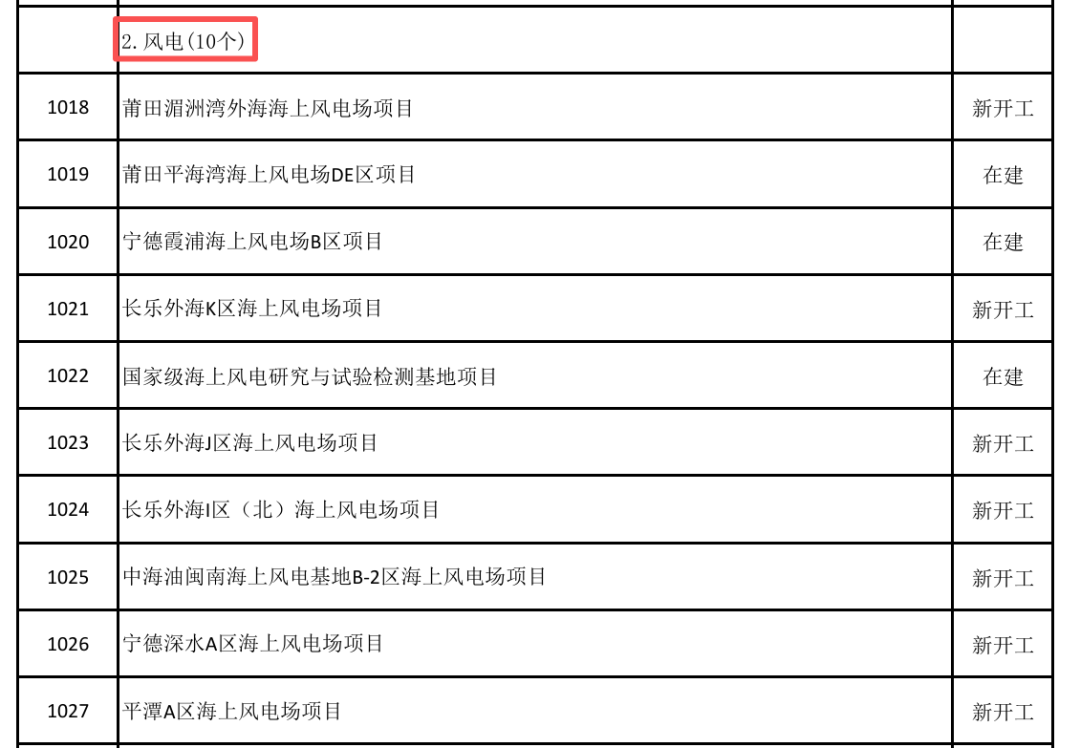 6、长乐外海J区海上风电场项目(新开工):位于长乐东犬岛东侧海域,总装机容量656MW,拟建设41台单机容量16MW的海上风电机组。