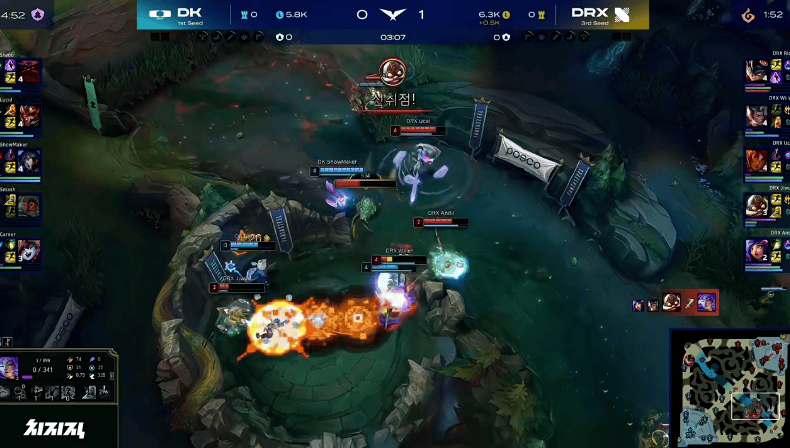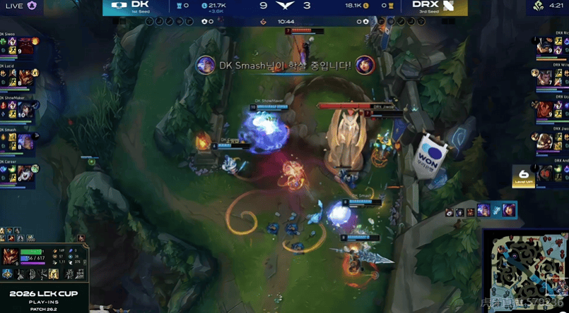 10分钟:DK下路四包二越塔强杀了对方双人组