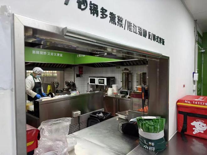 第一财经在店内发现,午餐高峰期厨房内一位师傅负责出餐,同时看顾3台炒菜机,更多的人工在进行打包。马哲透露,日常情况下,门店仅午餐高峰期就会出餐600份。