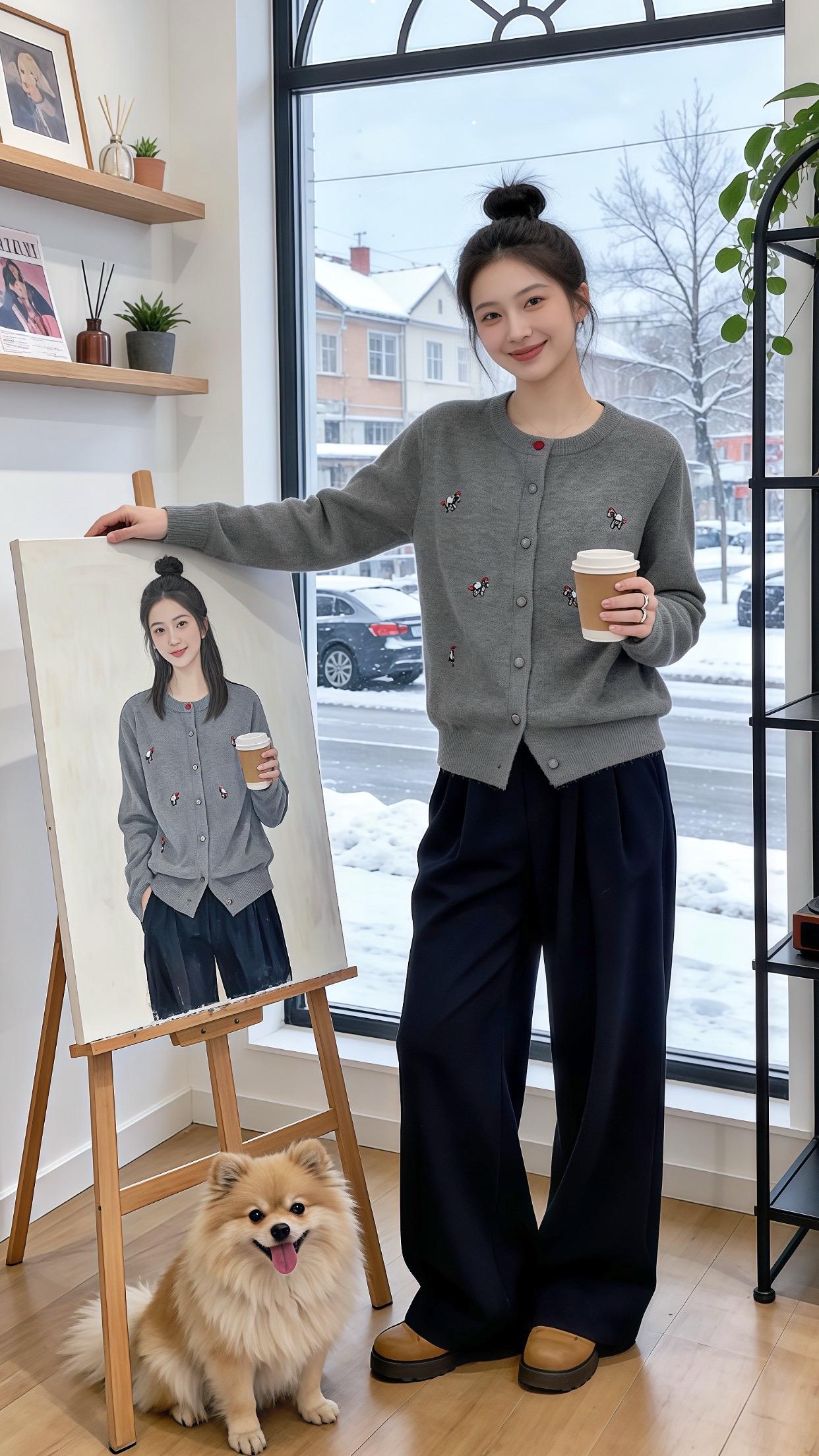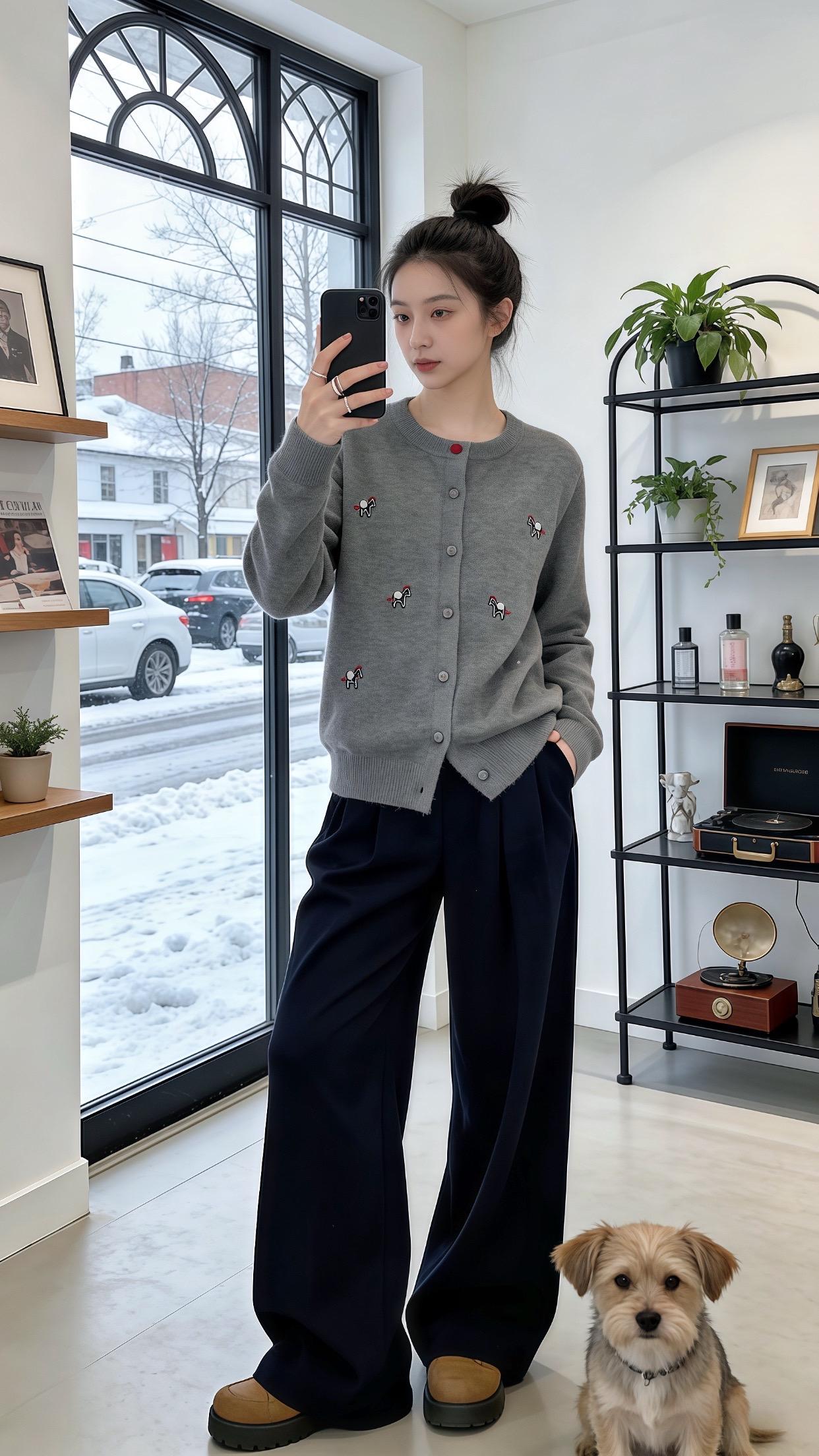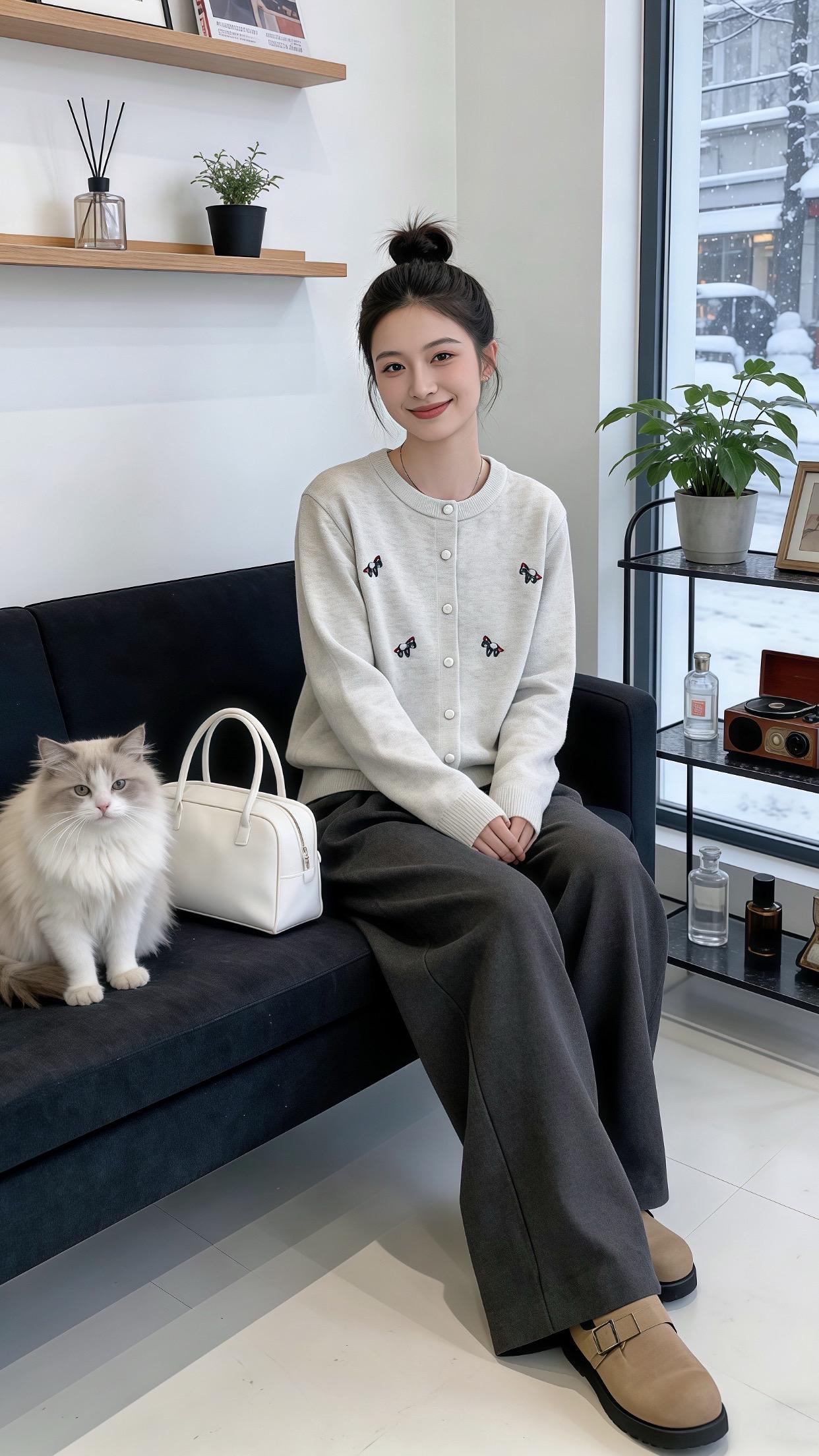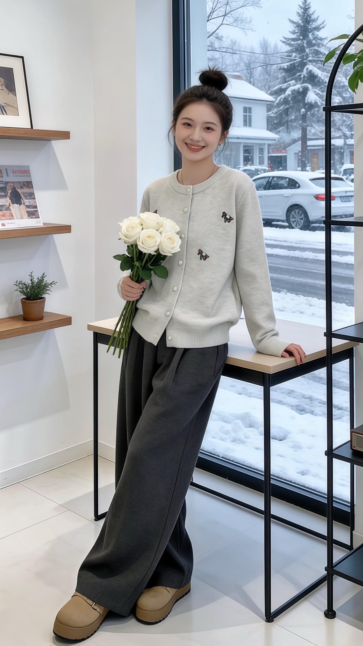 冬日穿搭指南:灰色针织衫+贝雷帽,温暖又时尚!街拍高清美女