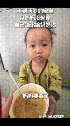 “不到2岁的宝宝火到人民日报了!”一段来自河北廊坊的视频,短短几十秒,让无数网友瞬间破防,视频的主人公是一个不到2岁的宝宝,早晨他见妈妈没有起床就把自己要喝的粥给妈妈!妈妈意外又感动! 河北廊坊,一个还不到2岁的小宝宝,小小的一只,走路还带着点蹒跚,说话也只是咿咿呀呀的碎语,却有着超乎年龄的懂事和贴心。 事情发生在一个普通的早晨,天刚蒙蒙亮,家里还透着几分静谧,宝宝像往常一样,早早地就醒了过来。 不同于其他小宝宝醒来就哭闹、找妈妈抱,这个小家伙醒来后,安安静静地坐在小床上,揉了揉惺忪的睡眼,四处看了看,发现身边的妈妈还没有起床,依旧躺在床上,闭着眼睛休息。 宝宝没有去打扰妈妈,而是自己小心翼翼地爬下床,小小的身子摇摇晃晃,生怕摔倒,一步步挪到了客厅。 原来,家里人早早地就做好了早饭,给宝宝盛好了一碗温热的粥,放在了矮矮的小桌子上,刚好能让宝宝够到。 宝宝走到小桌子旁,伸出胖乎乎的小手,费力地端起那碗属于自己的粥。粥碗不算小,对不到2岁的宝宝来说,分量也不算轻,他的小手紧紧抓着碗沿,手指因为用力而微微泛白,身子还得微微前倾,才能稳住手里的粥碗,不让粥洒出来。 他端着粥碗,一步一步,慢慢悠悠地挪回卧室,每走一步都格外小心,眼睛紧紧盯着碗里的粥,生怕一个不小心,粥洒出来烫到自己,也生怕耽误了给妈妈送粥。 一路上,他的小身子摇摇晃晃,好几次都差点站不稳,却始终没有松开手里的粥碗,那份执着和认真,让人看了格外心疼,也格外暖心。 其实宝宝还小,自己都还需要大人喂饭,很多时候,连勺子都拿不稳,却在那一刻,心里想着还没起床的妈妈,想着把自己要喝的粥,先递给妈妈。 这份发自内心的贴心,不是刻意教导出来的,而是刻在骨子里的善良,是最纯粹、最动人的爱意。 慢慢的,宝宝终于挪到了妈妈的床边,他踮着脚尖,努力把手里的粥碗往妈妈面前递,嘴里还发出咿咿呀呀的声音,像是在提醒妈妈,该起床喝粥了,又像是在告诉妈妈,这是他特意给妈妈拿过来的。 此时,妈妈其实已经醒了,只是还没有起床,原本想趁着宝宝没醒,多休息一会儿,没曾想,宝宝竟然悄悄起身,还端着自己的粥给她送了过来。 当感受到宝宝胖乎乎的小手递过来的温热粥碗,听到宝宝咿咿呀呀的叮嘱,妈妈瞬间就被惊喜和感动包围,那种意外又暖心的感觉,让她眼眶都微微发红。 妈妈悄悄拿起手机,把这暖心的一幕完整地拍摄了下来,视频里,宝宝依旧踮着脚尖,固执地把粥碗往妈妈面前递,小小的脸上满是认真,没有一丝不耐烦。 妈妈没有立刻接过粥碗,只是静静地看着宝宝,感受着这份来自不到2岁小家伙的爱意,心里满是柔软。 后来,妈妈把这段视频随手分享到了网上,没曾想,短短几个小时,就收获了大量的点赞和转发,很快就火遍了全网,甚至被人民日报注意到,转发了这段视频,称赞这个小宝宝懂事又贴心,用最纯粹的方式,诠释了什么是爱。 宝宝或许还不懂什么是爱,不懂什么是孝顺,却用最本能的举动,把最好的东西留给妈妈,把最纯粹的爱意,送给了最亲近的人。 这段短短几十秒的视频,没有惊天动地的壮举,却用最平凡的日常,暖哭了无数人,也让很多人明白,爱意从来都不分年龄,哪怕是不到2岁的小宝宝,也能把爱表达得淋漓尽致。 对此,你们有什么看法,欢迎评论留言~
