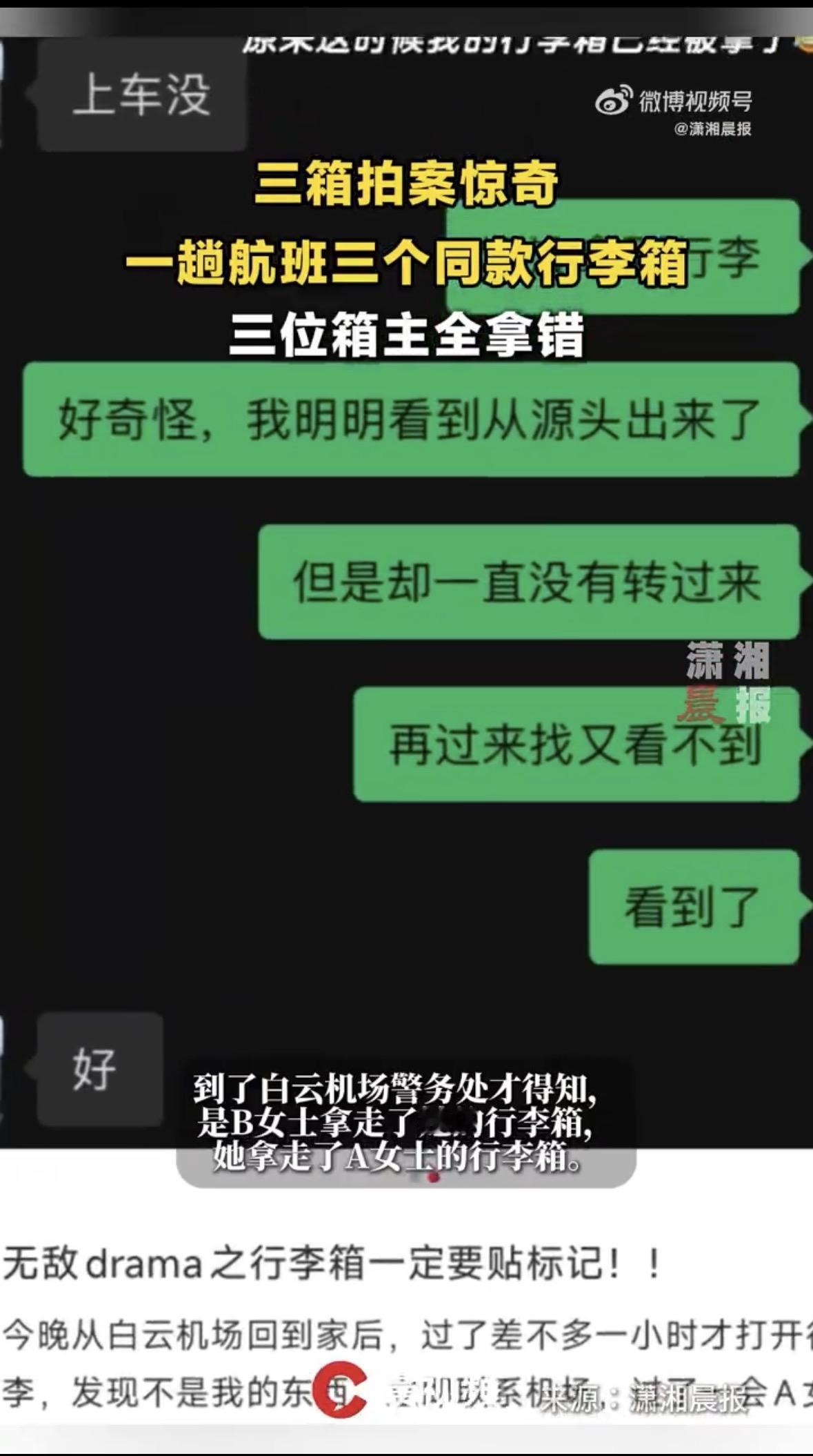 同一趟航班,三个一模一样的行李箱,能被三个人连环拿错!电视剧都不敢这么编。 广州白云机场就出了这桩奇事。谢女士落地取行李,拖着箱子回家,一打开傻眼了——里头东西全不认识。赶紧联系机场,很快有位A女士打来电话,说箱子拿错了,俩人约好地方准备换。 更绝的来了!谢女士刚要出门,民警电话追过来:另一位B女士也报案了,手里拽着的才是谢女士的箱子。得,三方全部乱套。 赶到警务室一碰面,真相大白:三个人,三个同款行李箱,在传送带前完美上演了一场“错位接力”。谢女士拿了A的,A拿了B的,B拎走了谢的。网友神评论:“这仨箱子怕不是失散多年的亲兄弟?” 说真的,箱子长得像难免,但这次离谱到三个人全串错,也是难得一见。我倒觉得这事挺有意思——现代人出行节奏太快,有时候只顾着赶路,却把最该留神的细节给马虎了。给自己的行李箱挂个醒目的标识,花不了几秒钟,却能省去一堆麻烦。 生活里这种小插曲,笑笑过后,也挺温暖。有些巧合,反而让陌生人间多了一点哭笑不得的连接。下次收拾行李时,不妨多贴个贴纸、绑根丝带吧,让它成为茫茫箱海里,专属于你的那一个。