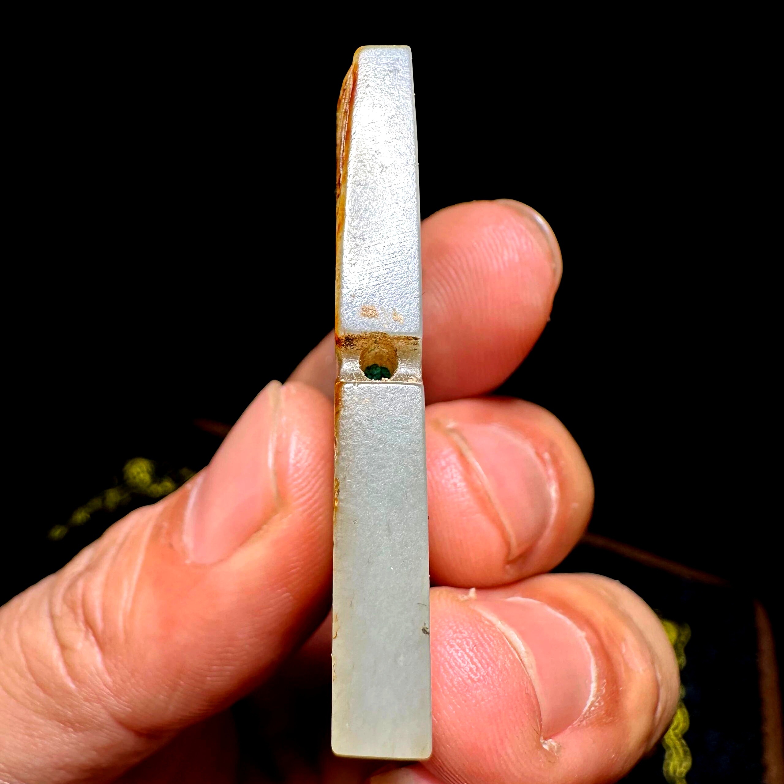 宋代玉器,绝大多数无沁,有一部分做的假沁,黑漆古具多,也有红色的琥珀,十分艳丽。