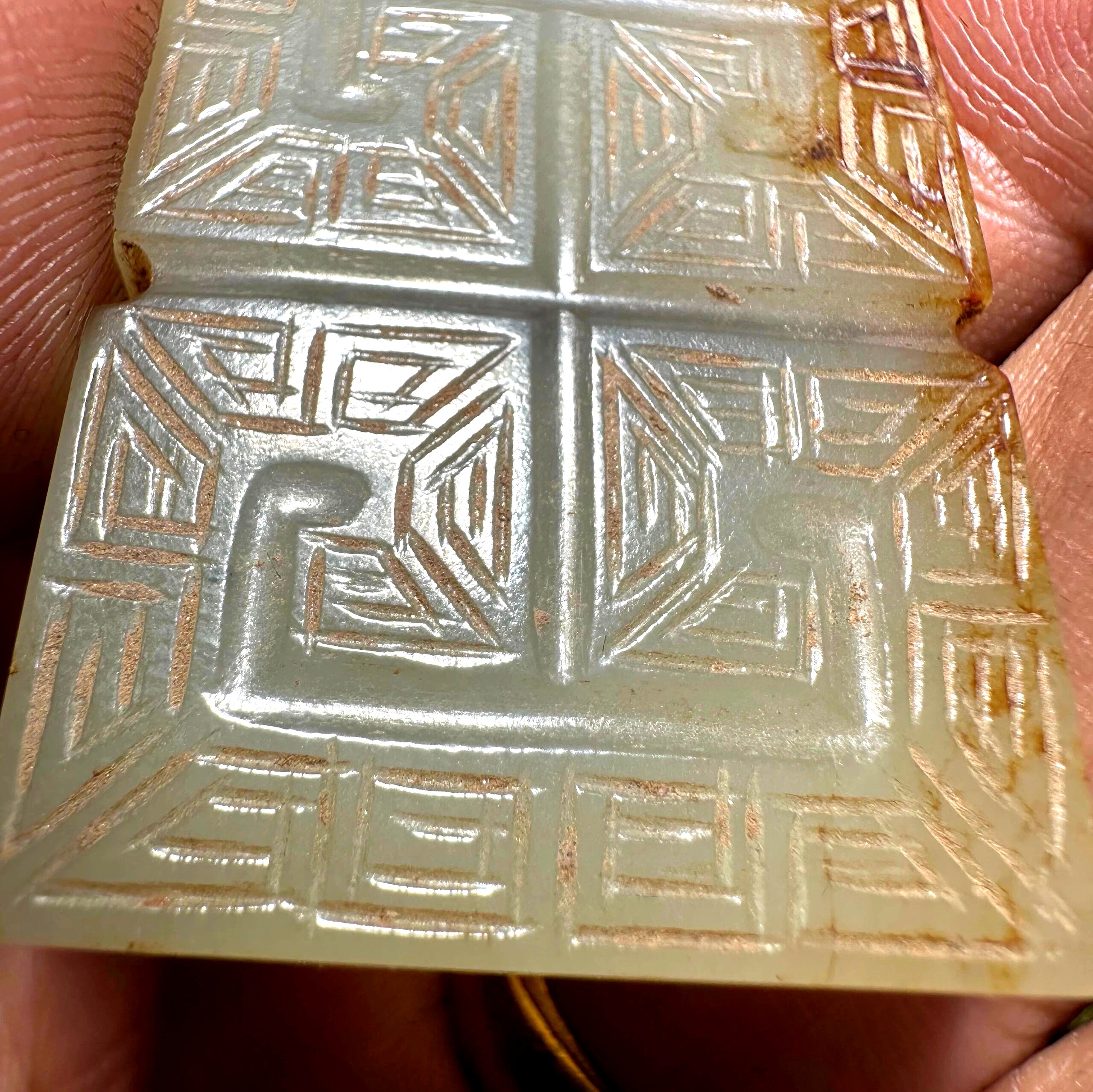 古玉杂谈 宋代工字牌与汉代工字牌之区别,前者有图案无角度,后者无图案有角度,很容易区别……